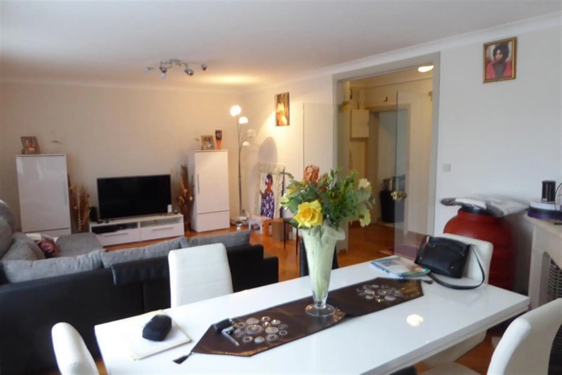 COMPROMIS SIGNE ! Au 1er étage droit: +/- 98 m² -Grand hall d'entrée parqueté avec grand vestiaire -Living parqueté de 4 m x 7 m avec...