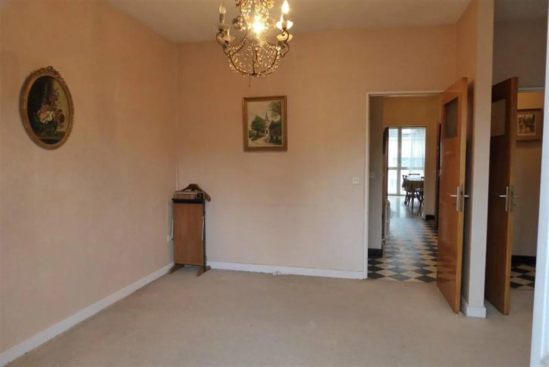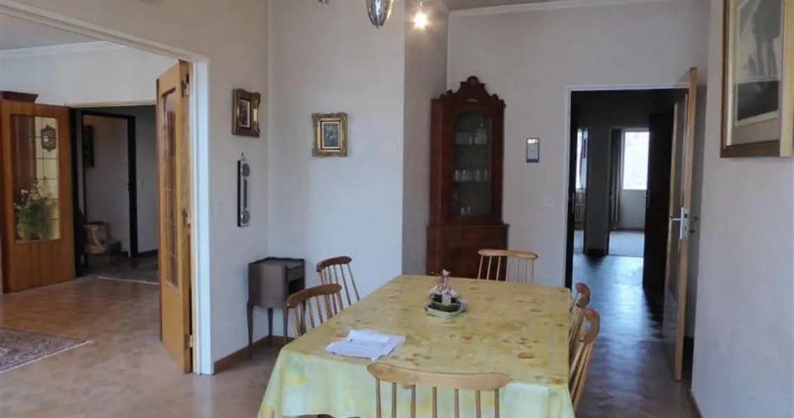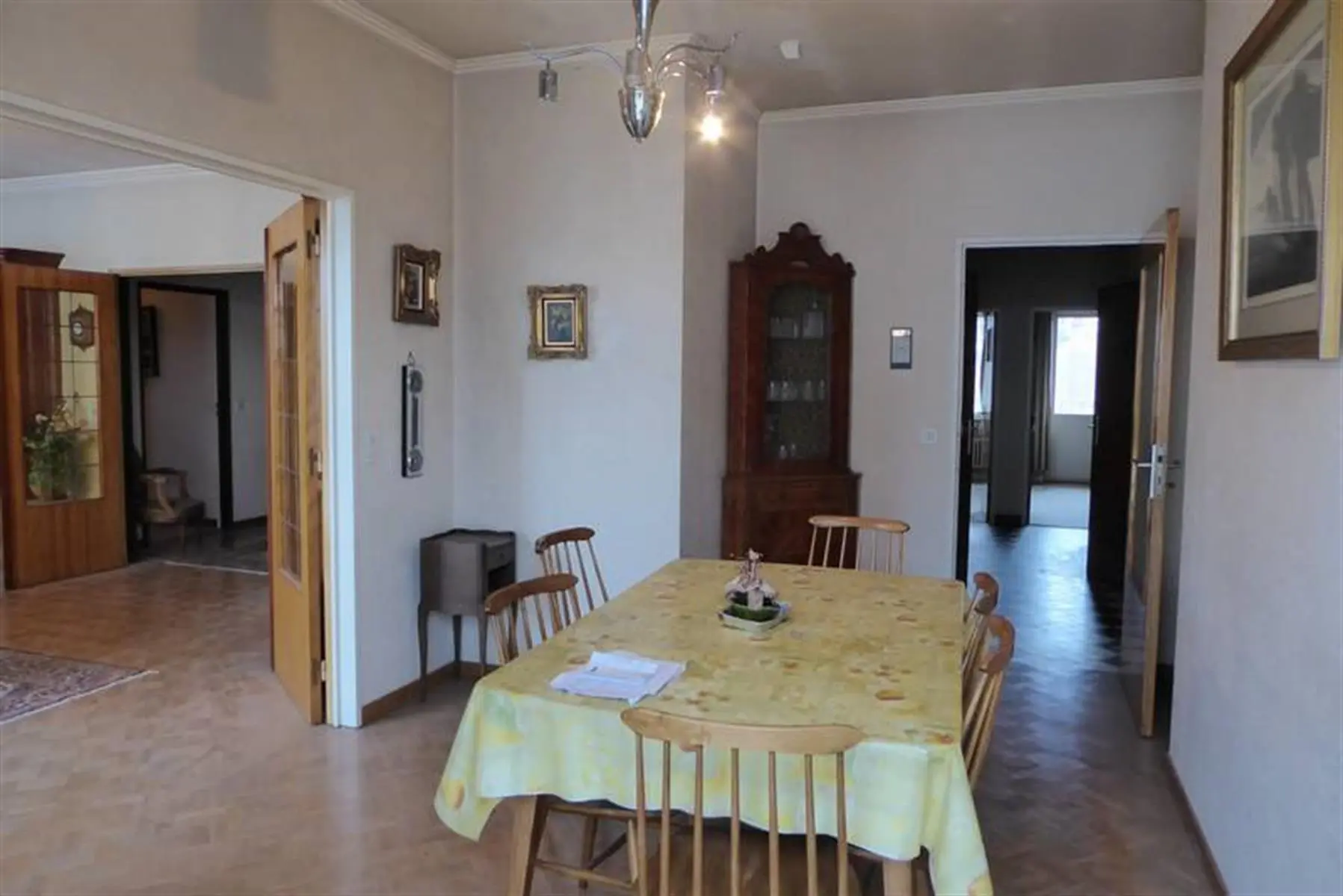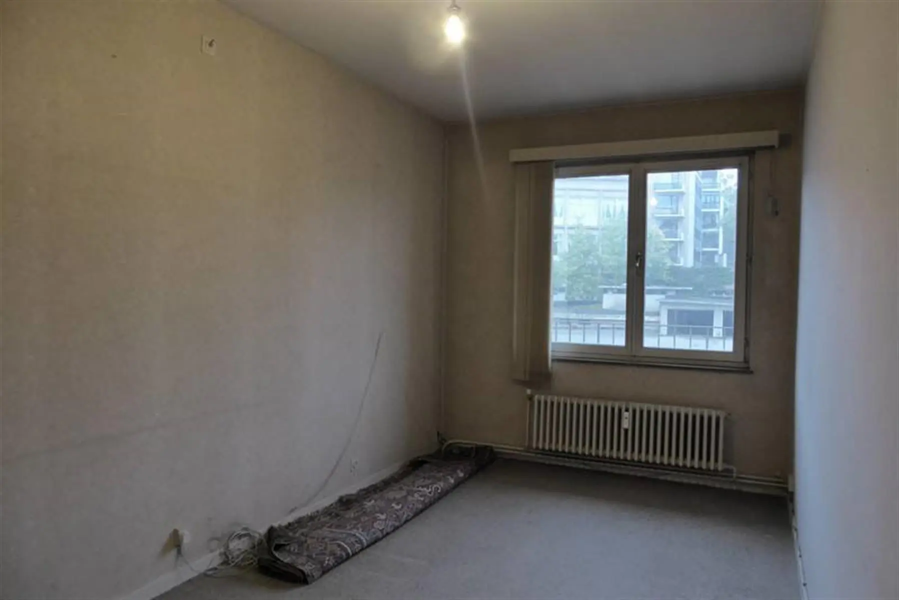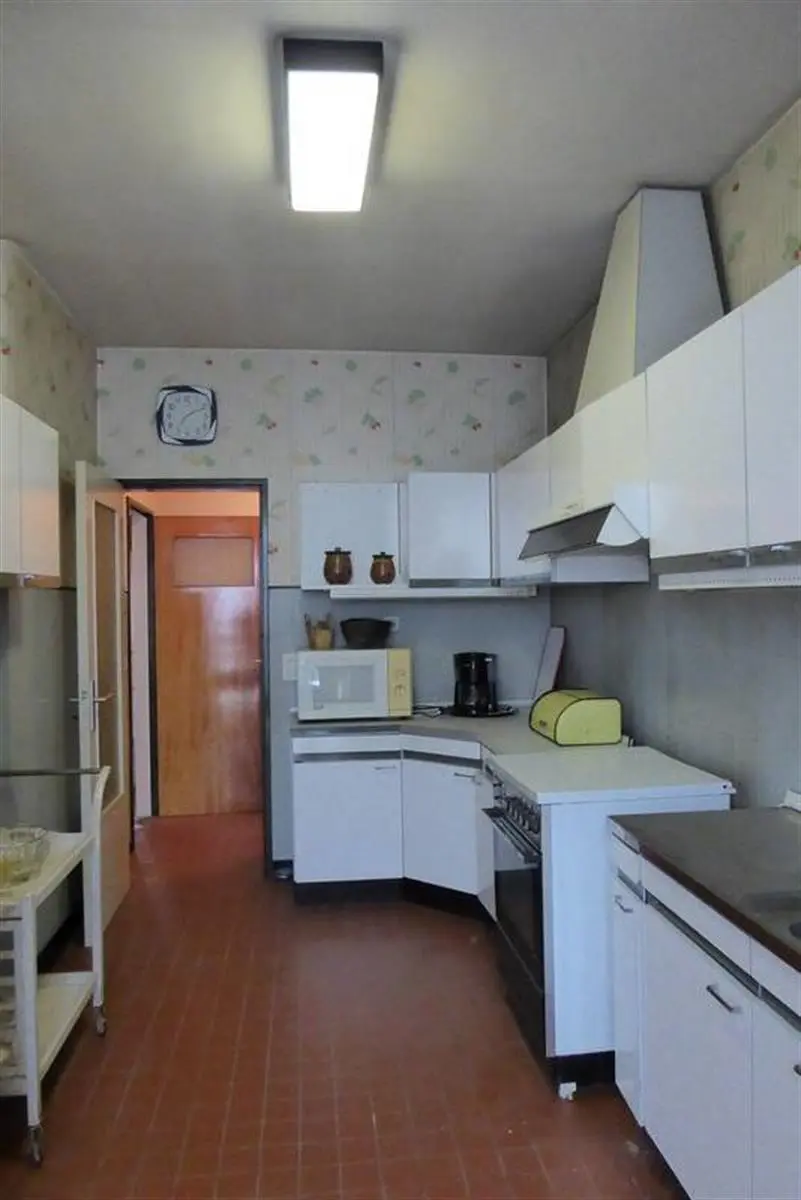 Spacieux appartement 4 chambres au centre ville, d'une superficie d'environ 210 m²:Au 6ème étage :- Hall d'entrée- Séjour d'environ 15 m²- Cuisine meublée semi équipée : évier, cuisinière, hotte, frigo congélateur- Débarras avec point d'eau- Spacieux living d'environ 45 m²- wc séparé- 3 belles chambres avec balcon (à l'arrière)- Deux salles de bains équipées : lavabo, baignoire, bidet- 1 grande chambre avec balcon (à l'arrière)- 1 dressing- Buanderie avec évier et emplacement lessiveuseSous-sols: une caveÉquipement:Eau, électricité, égouts, tel et tvd, chauffage central général au mazout avec calorimètres, châssis double vitrage, parlophone, ouvre porte, ascenseurLIBRE