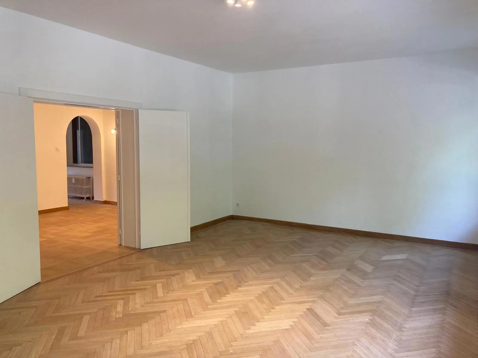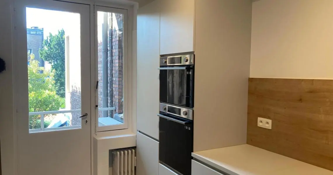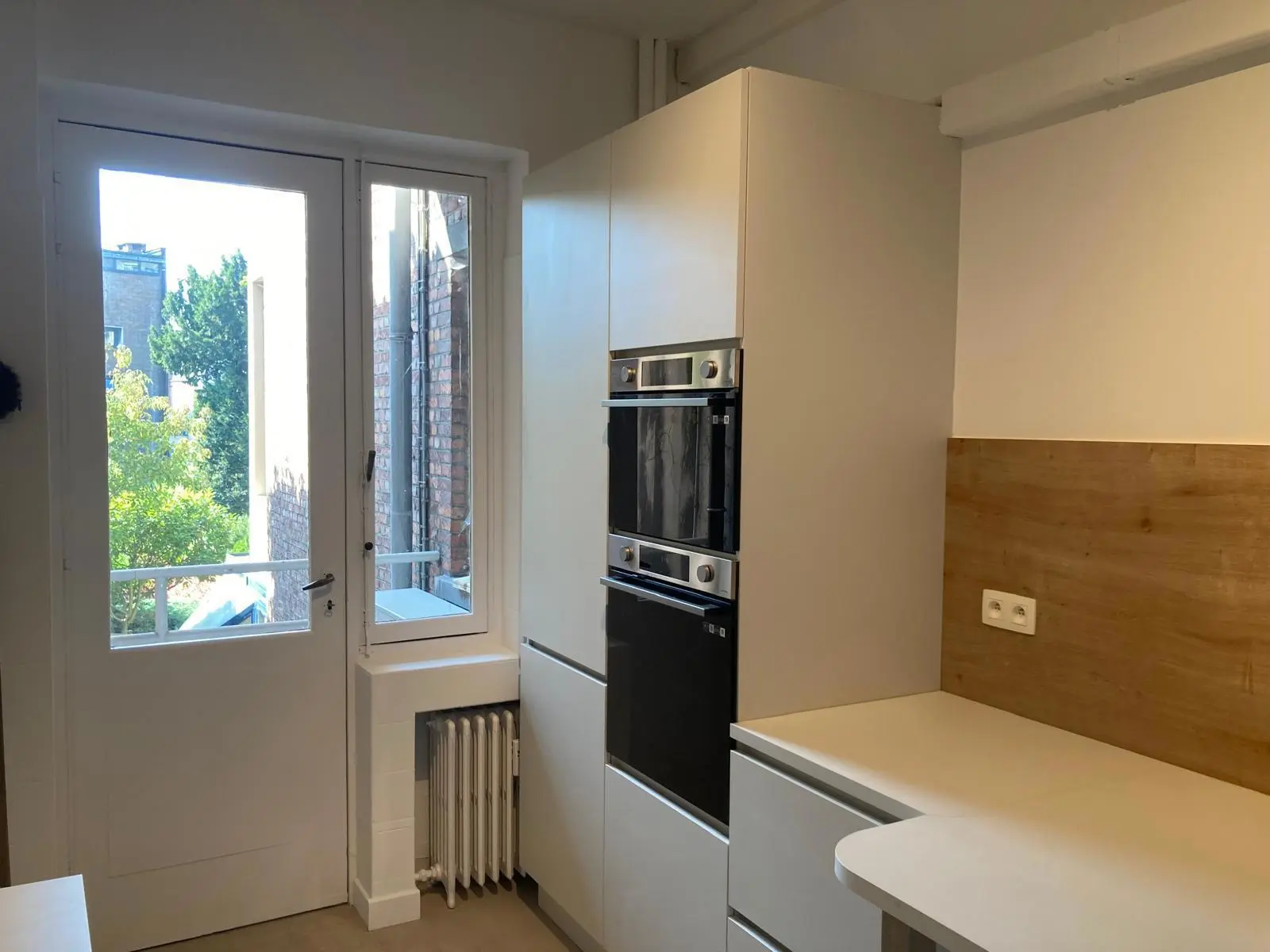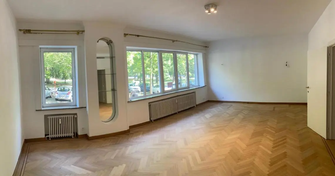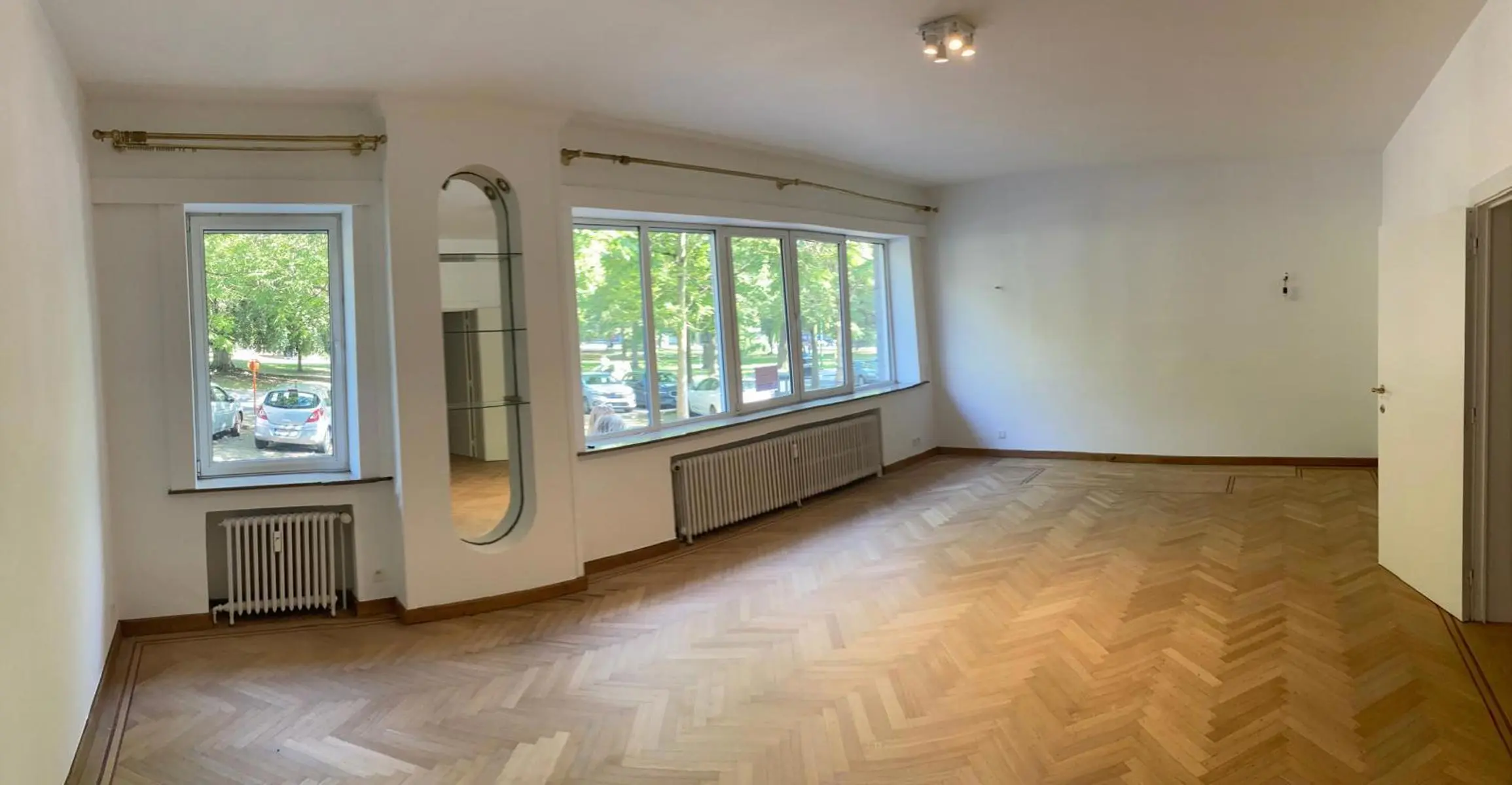 Au rez-de-chaussée, spacieux et lumineux appartement de 3 belles chambres avec vue sur joli jardin aménagé Composition: Grand hall de jour donnanant accès à un grand living parqueté de 45 m² Vestiaire avec wc Cuisine entièrement meublée et équipée donnant sur une terrasse arrière Un bureau ou une chambre Un hall de nuit Deux chambres lumineuses et spacieuses donnant sur une grande terrasse arrière surplombant un joli jardin aménagé Salle de bains complète avec meuble lavabo, wc et douche italienne, espace buanderie Comfort: Eau, électricité, chauffage central au gaz avec calorimètres (nouvelle chaudière de 2 ans), hall commun à rue avec système de sécurité, porte sécurisée, cuisine meublée et équipée DOVY (2023), salle de bains BOFAPI (2023), parquets rénovés, peintures rénovées Provision mensuelles pour charges communes et chauffage : 260 Euros Superficie habitable : 159 m² Revenu cadastral : 1.405 Euros Libre : à l'acte