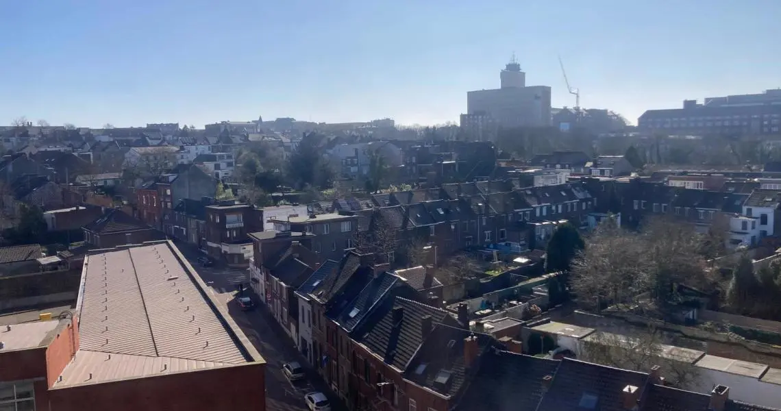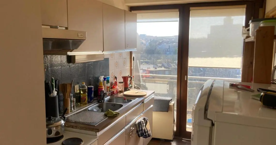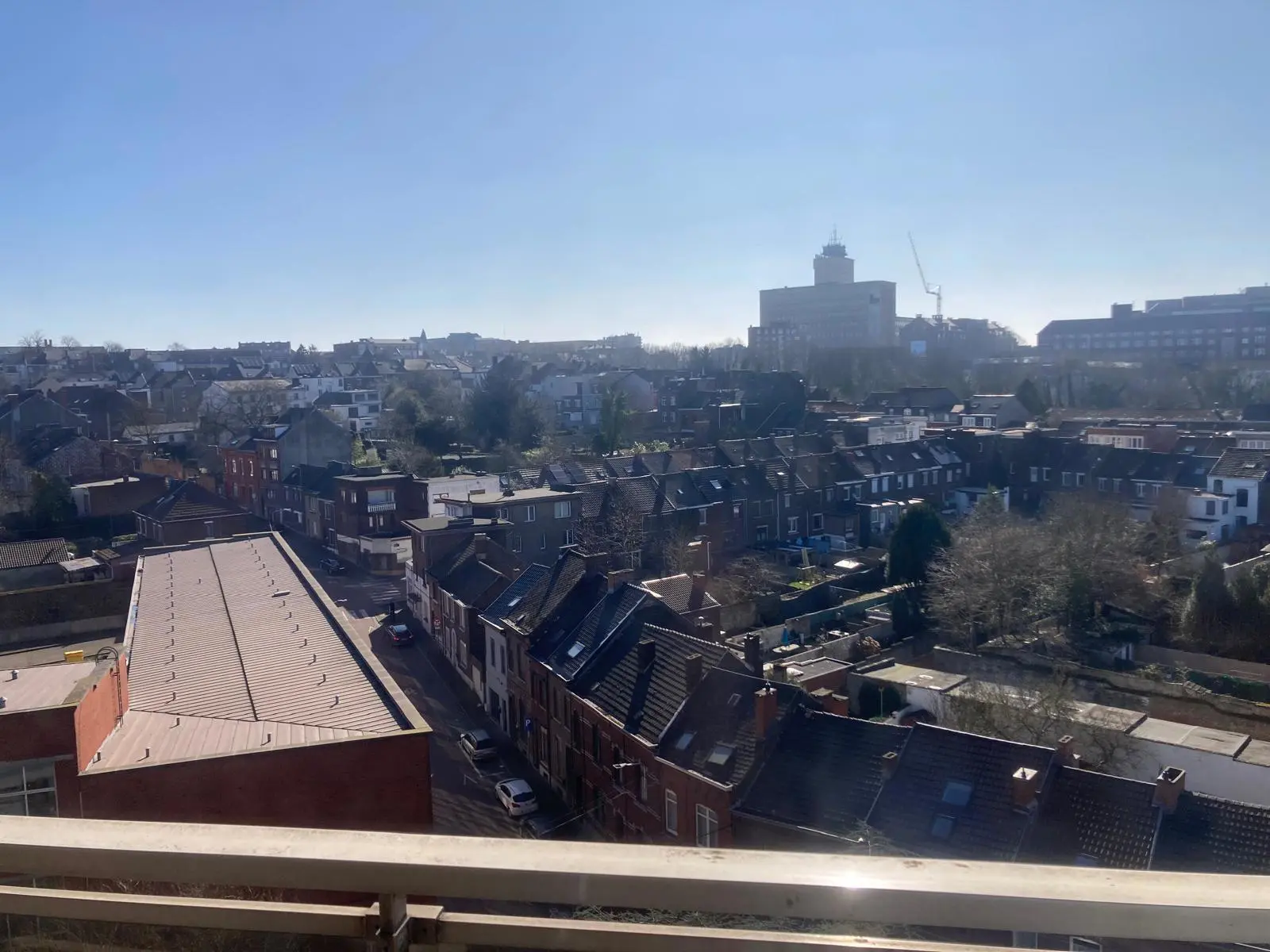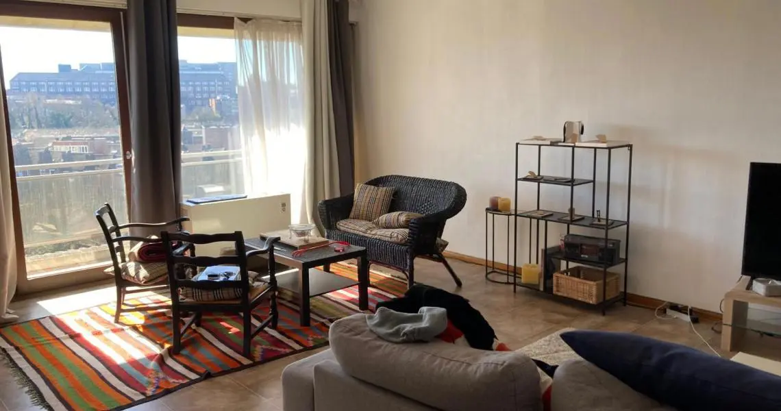 Proche de toutes communications, lumineux appartement 2 chambres et cave avec deux grandes terrasses 8ème offrant de jolies vues. Hall d'entrée, cuisine meublée et semi équipée sur grande terrasse, living (38 m2) avec porte fenêtre sur grande terrasse, wc, salle de bains avec baignoire/douche, deux chambres avec portes fenêtres sur grand balcon arrière. RC de base: 880 euros. Provision mensuelle charges: 155 euros. Gds travaux copropriété: néant. Electricité en conformité Libre d'occupation 09/2025. visites sur rendez-vous préalable.