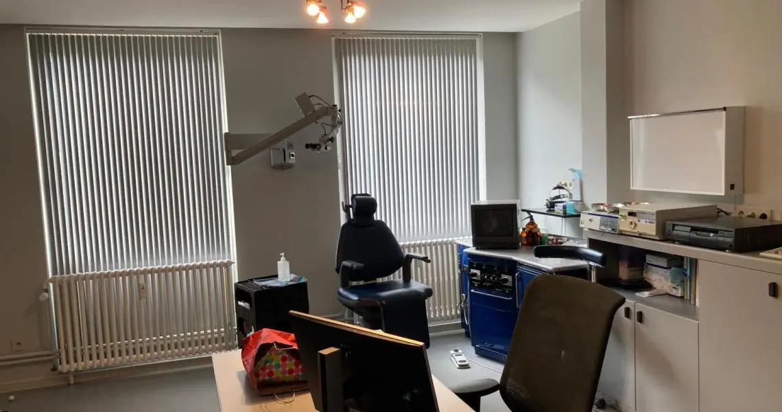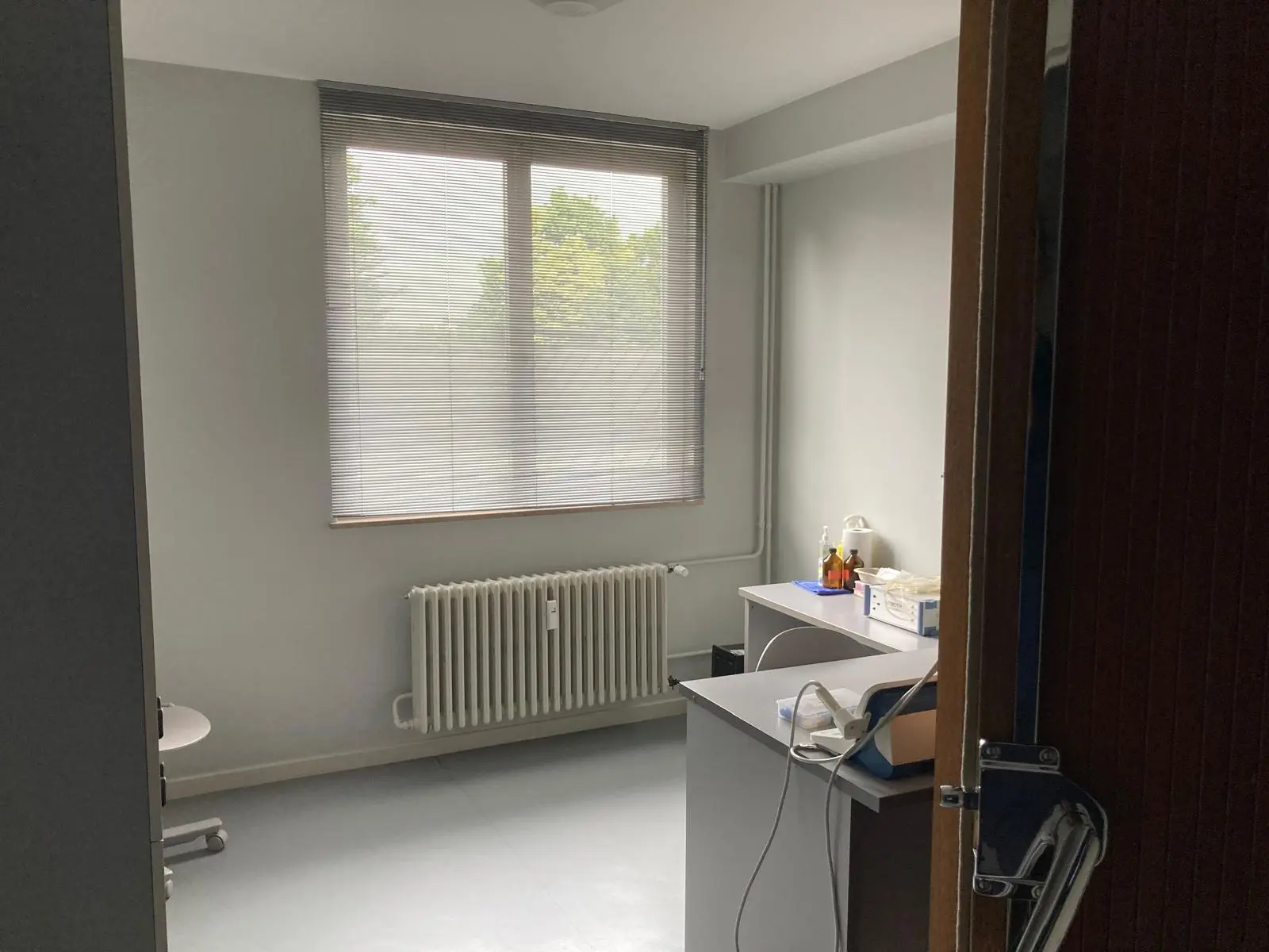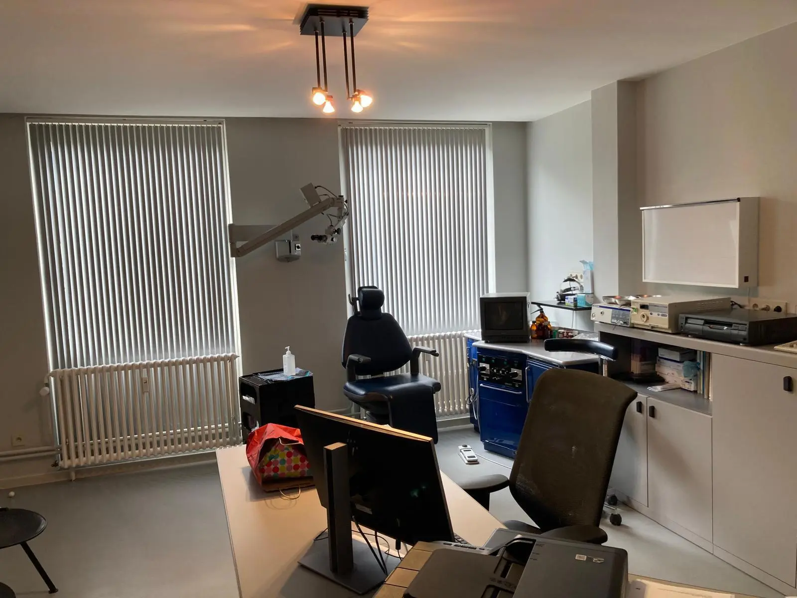 Appartement de 125 m², actuellement utilisé en cabinet médical, situé au 1er étage de la résidence Peut être réaménagé comme tel : Hall d'entrée Local pouvant être une cuisine Local pouvant être le living Sanitaires Buanderie Hall de nuit 3 pièces pouvant être les chambres Local pouvant être la salle de bain Petit balcon arrière Sous-sols : une cave Equipement: Eau, électricité, chauffage central au gaz avec calorimètres, éclairage et stores compris, hall d'entrée des communs sécurisé avec vidéophonie, ascenseur, châssis double vitrage Provision pour eau, charges communes et chauffage : 700 Euros par trimestre Provision pour fond de réserve : 100 Euros par trimestre