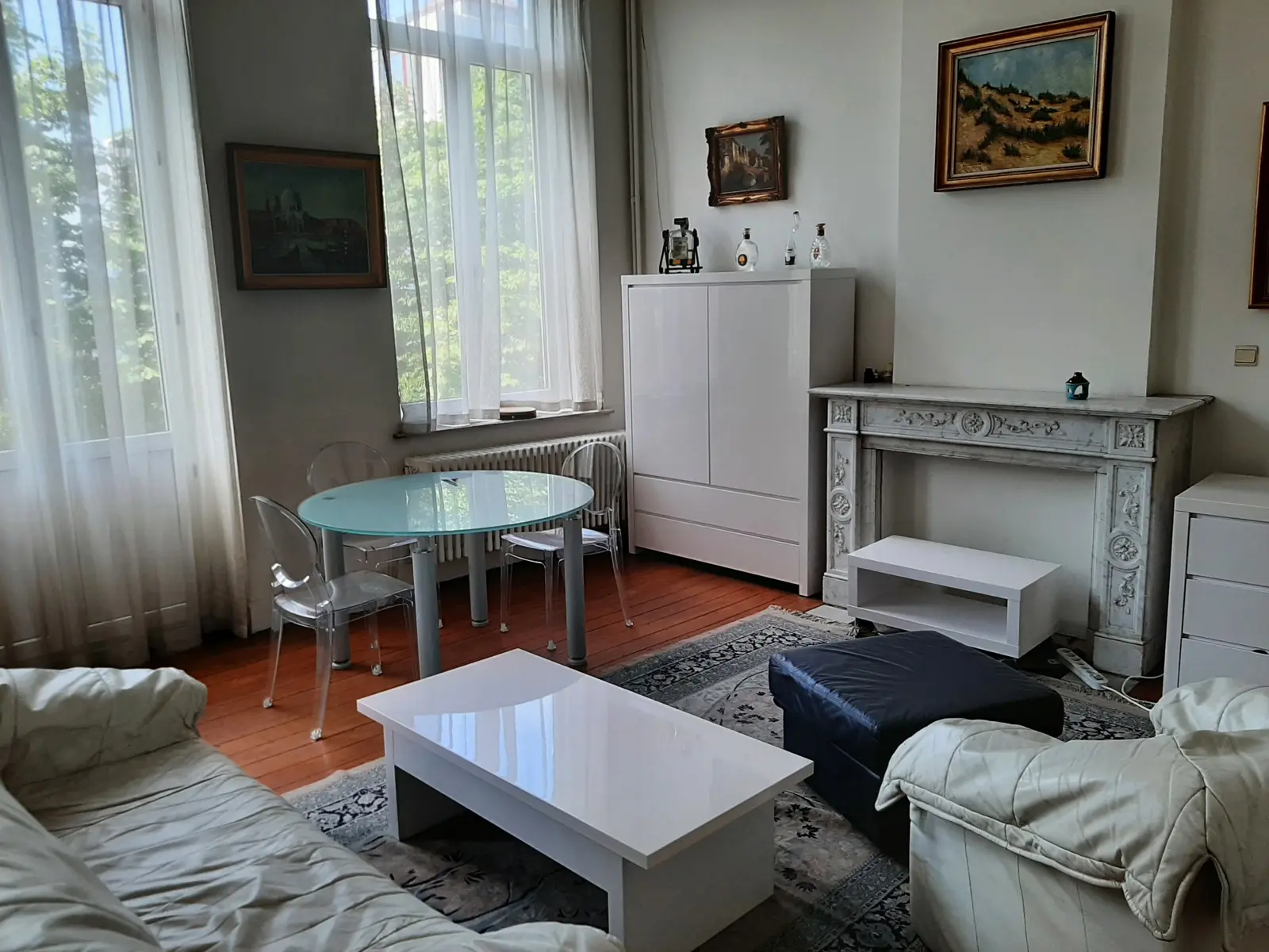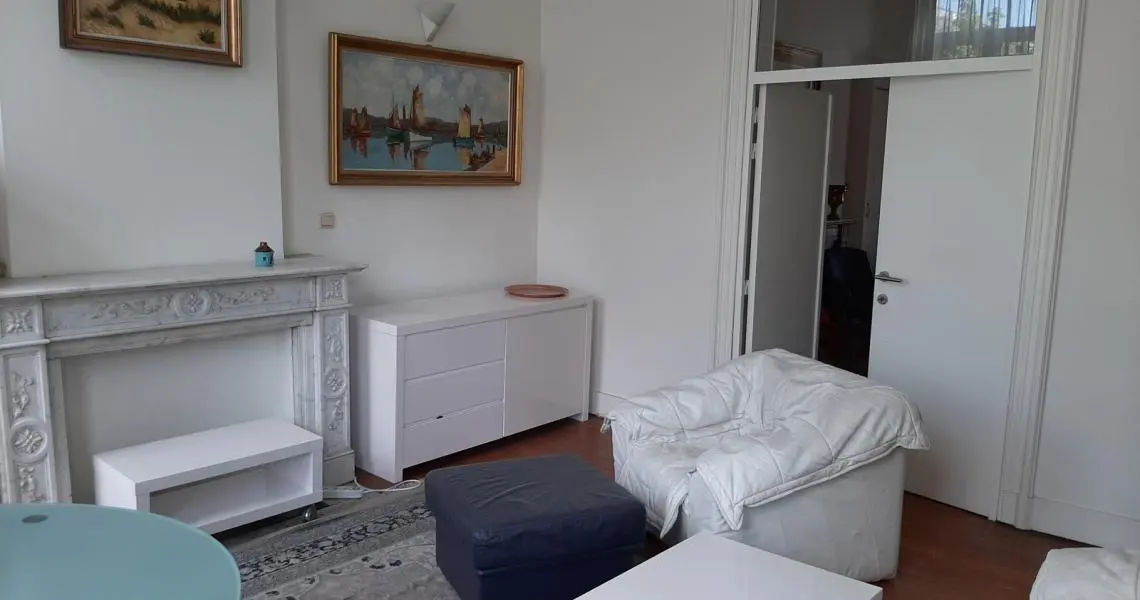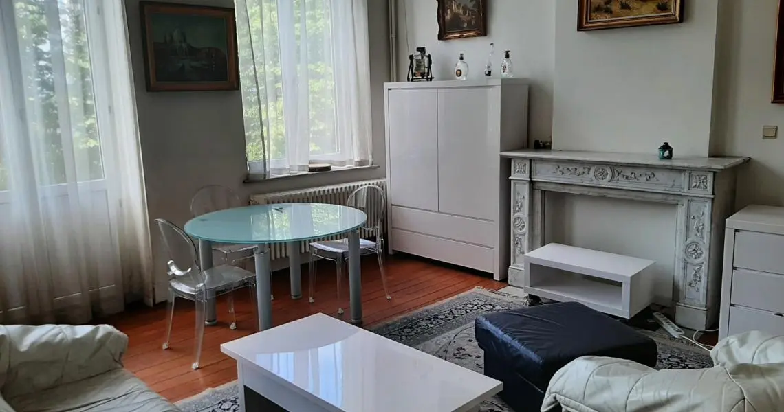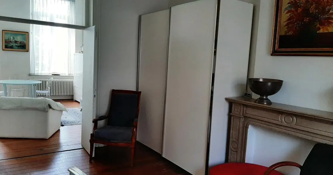 Dans immeuble Art Déco du centre ville, beau et spacieux appartement meublé, d'une chambre pour étudiant Rez-de-chaussée: Hall d'entrée commun, volet électrique 1er étage (sans ascenseur): Hall d'entrée Spacieux living parqueté Cuisine meublée et équipée : évier, plaque vitrocéramique, hotte, four et frigo Salle de douches : lavabo, cabine de douche, wc Une belle et spacieuse chambre Equipement: Eau, électricité, tel, égouts, chauffage central au gaz avec production d'eau chaude Libre Bail : 1 an