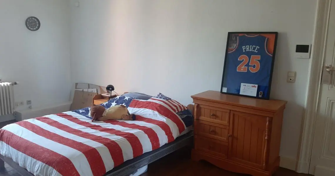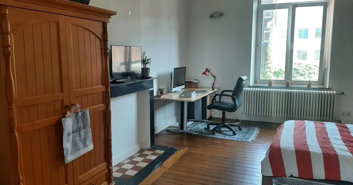 Dans immeuble Art Déco du centre ville, beaux et spacieux appartements meublés, d'une chambre pour étudiant Rez-de-chaussée: Hall d'entrée commun, volet électrique 1er et 2ème étage (sans ascenseur): Hall d'entrée Spacieux living parqueté Cuisine meublée et équipée : évier, plaque vitrocéramique, hotte, four et frigo Salle de douches : lavabo, cabine de douche, wc Une belle et spacieuse chambre Equipement: Eau, électricité, tel, égouts, chauffage central au gaz avec production d'eau chaude Libre : début septembre Bail : 1 an