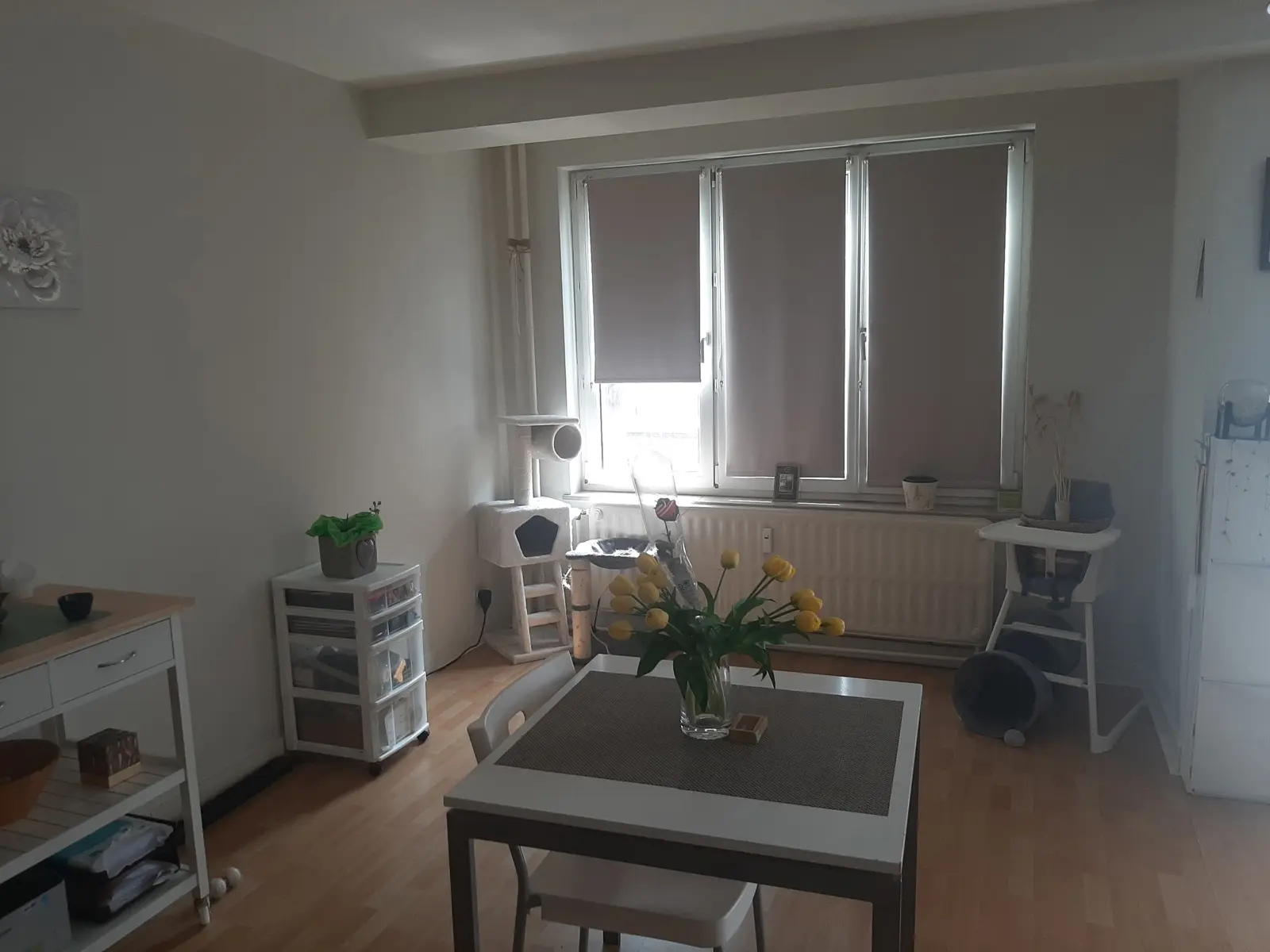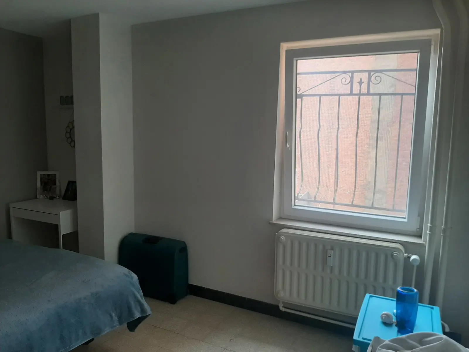Au centre ville, appartement d'une chambre Au 1er étage arrière: Hall d'entrée Cuisine semi équipée : évier, taque électrique, four, frigo Salle de douches: meuble lavabo, cabine de douche et wc ; emplacement lessiveuse Beau et lumineux living parqueté avec petit balcon Une chambre Equipement: Eau, égouts, tél, électricité mise en conformité, ascenseur conforme, nouveaux châssis double vitrage (sauf cuisine), parlophone Provision mensuelle de 160 Euros pour eau froide, charges communes et chauffage Libre : 01/09/2025 Garantie locative de DEUX MOIS Etat des lieux par Expert, soit 150 Euros HTVA pour chacune des parties