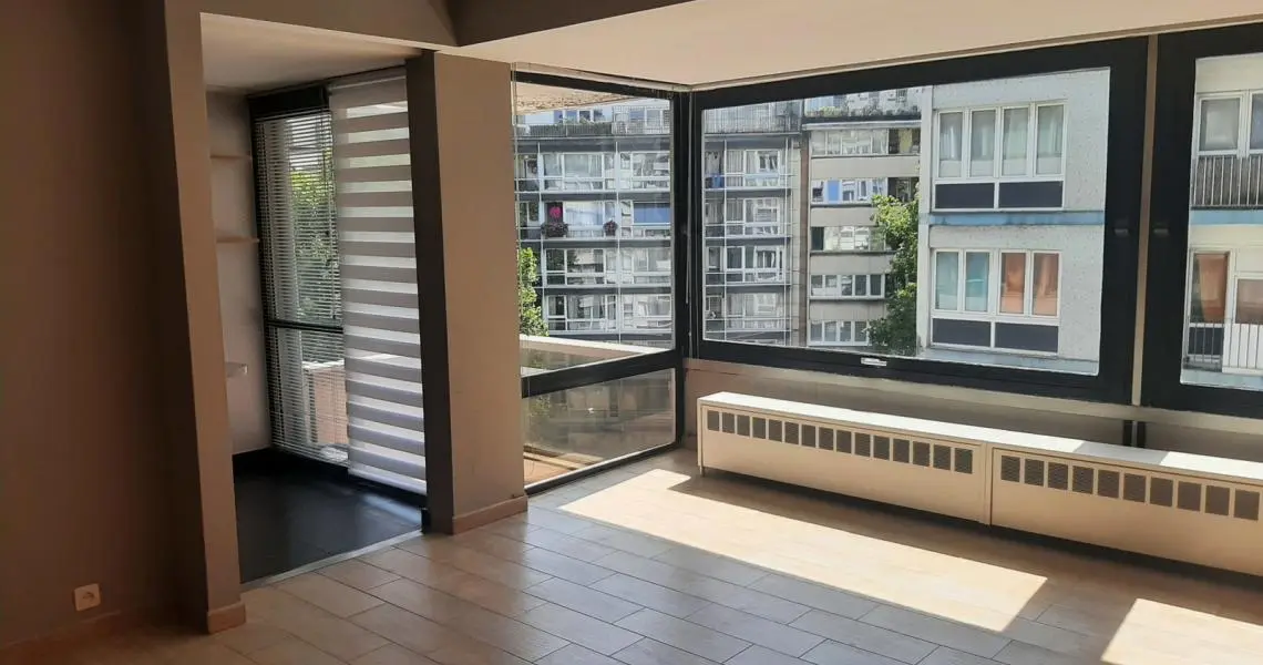 Spacieux appartement de 2 chambres avec jolie vue sur le Boulevard Tirou Possibilité de location d'un garage dans la résidence (100 Euros par mois) Au 6ème étage (ascenseur B) Appartement carrelé et porte blindée Vaste hall d'entrée Vestiaire avec placard - wc séparé avec lave-mains Spacieux living d'environ 40 m² Cuisine meublée et équipée : meuble évier, plaque vitrocéramique, hotte, lave-vaisselle, four électrique, frigo, congélateur; emplacement micro-ondes, sortie sur petit balcon en façade Pièce de rangement Hall de nuit 2 chambres dont une avec sortie sur terrasse arrière Salle de douches : meuble lavabo avec rangement, cabine de douche; emplacement pour machine à laver Débarras Sous-sols: une cave Entresols: possibilité de location d'un garage: 100 Euros par mois Equipement: Eau, électricité, chauffage central au mazout avec calorimètres et production d'eau chaude, châssis bois, volets dans les chambres, vidéophonie et ouvre porte, ascenseur (déménagement /emménagement obligatoirement via lift) Provision mensuelle de 220 Euros pour eau chaude et froide, charges communes et chauffage Libre Surface habitable : 110 m² Garantie locative de DEUX MOIS Etat des lieux par Expert, soit 150 Euros HTVA, pour chacune des parties Bail 1 an