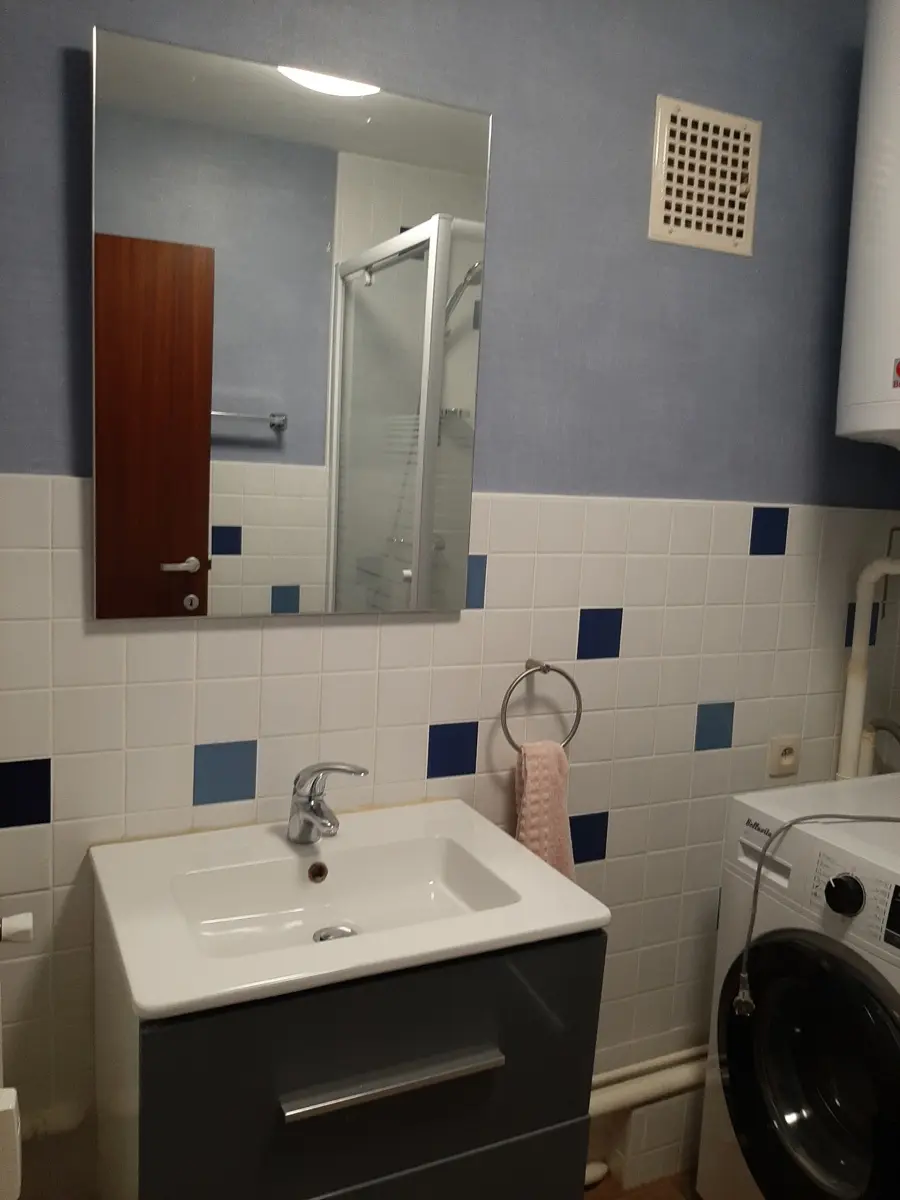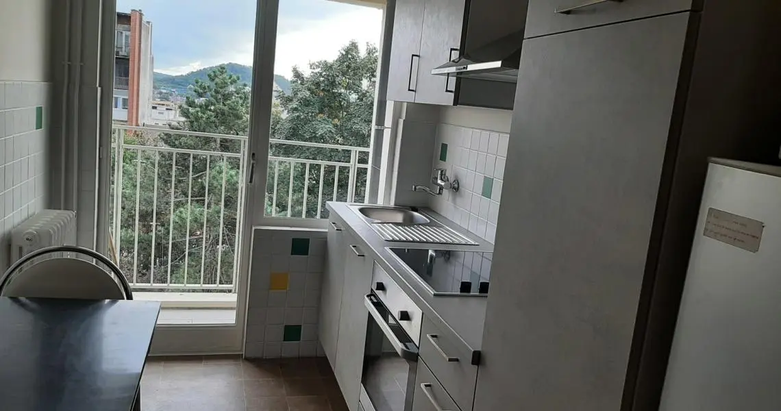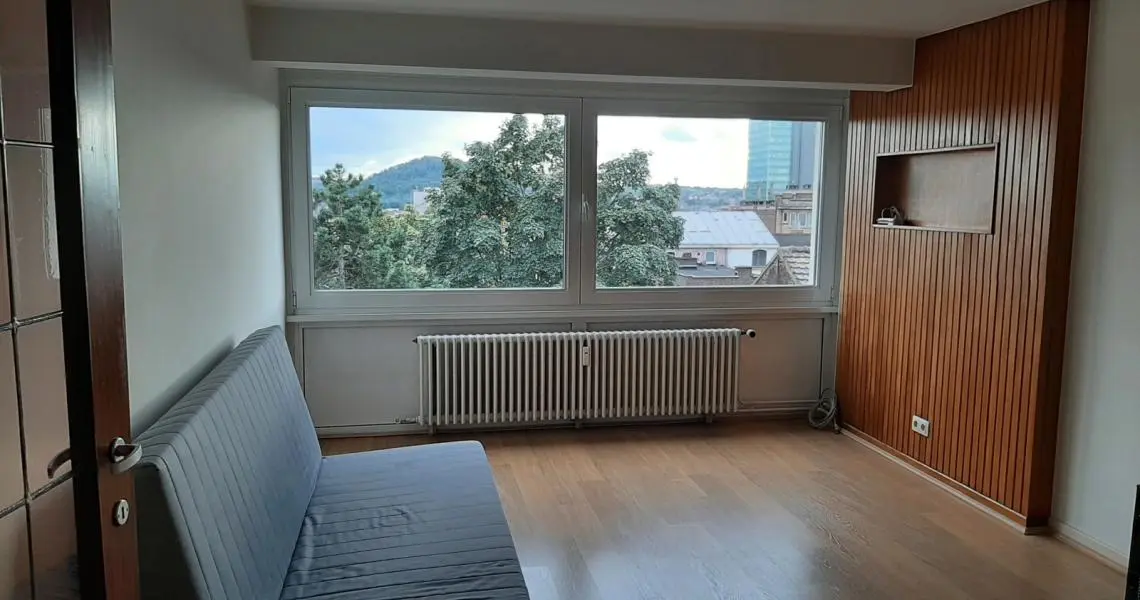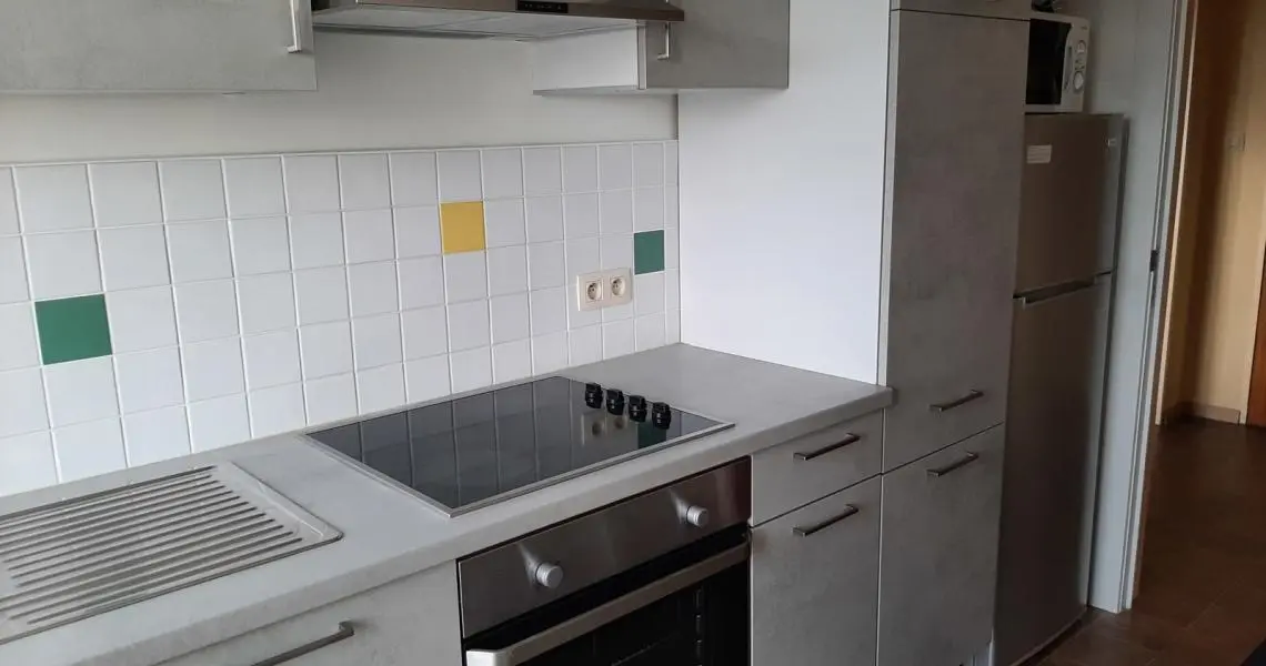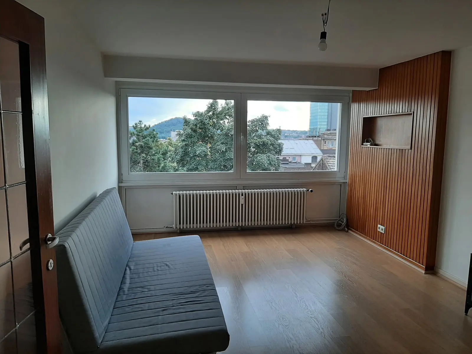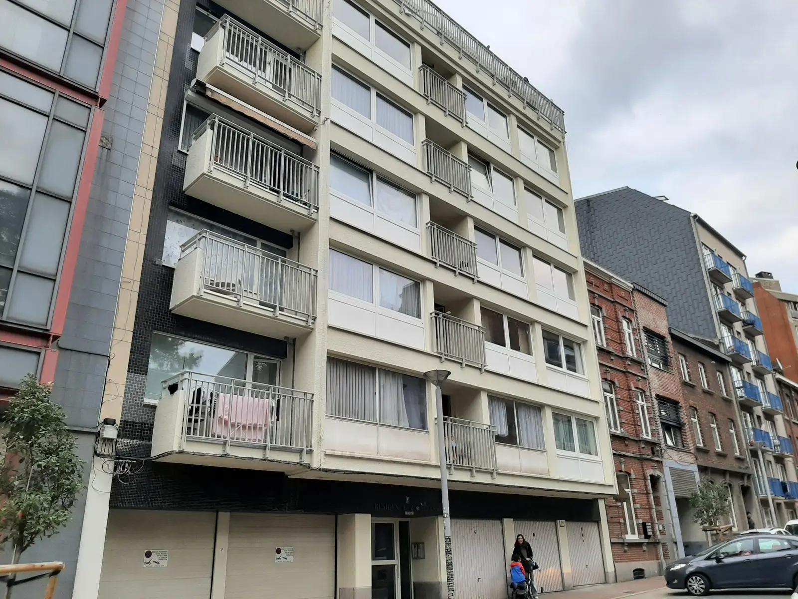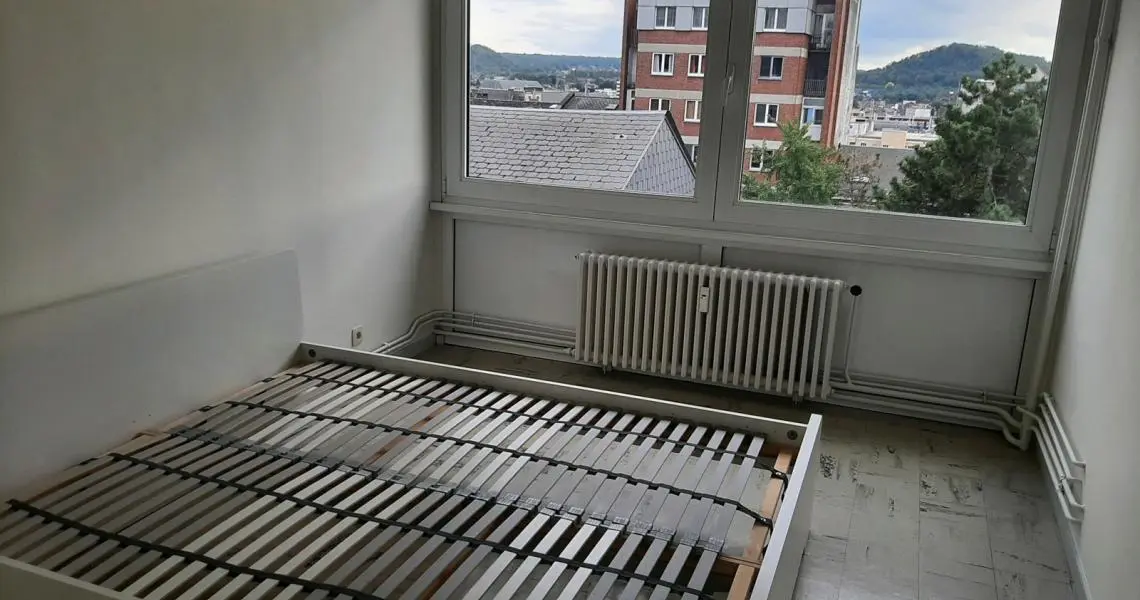 Lumineux appartement 1 chambre, tout confort en excellent état ! Au 5ème étage centre: Hall d'entrée avec vestiaire et placards Living offrant une jolie vue panoramique Cuisine meublée et équipée : évier, plaque vitrocéramique, hotte, four, frigo; sortie sur balcon Une chambre Salle de bains équipée : lavabo, cabine de douche, emplacement lessiveuse wc séparé Sous-sols : une cave Equipement: Eau, électricité, égouts, chauffage central au gaz à condensation avec calorimètres, eau chaude produite par boiler électrique, double vitrage, parlophone, ascenseur, compteur électrique bi horaire, installation électrique conforme Provision mensuelle de 160 Euros (Eau, charges communes et chauffage) Libre d'occupation
