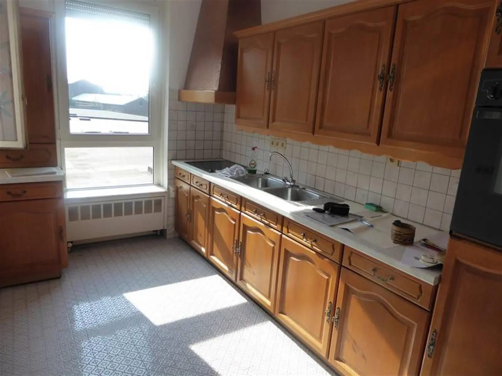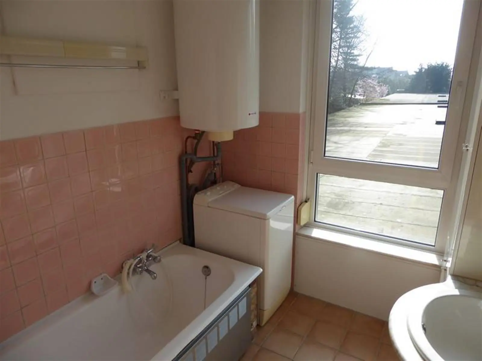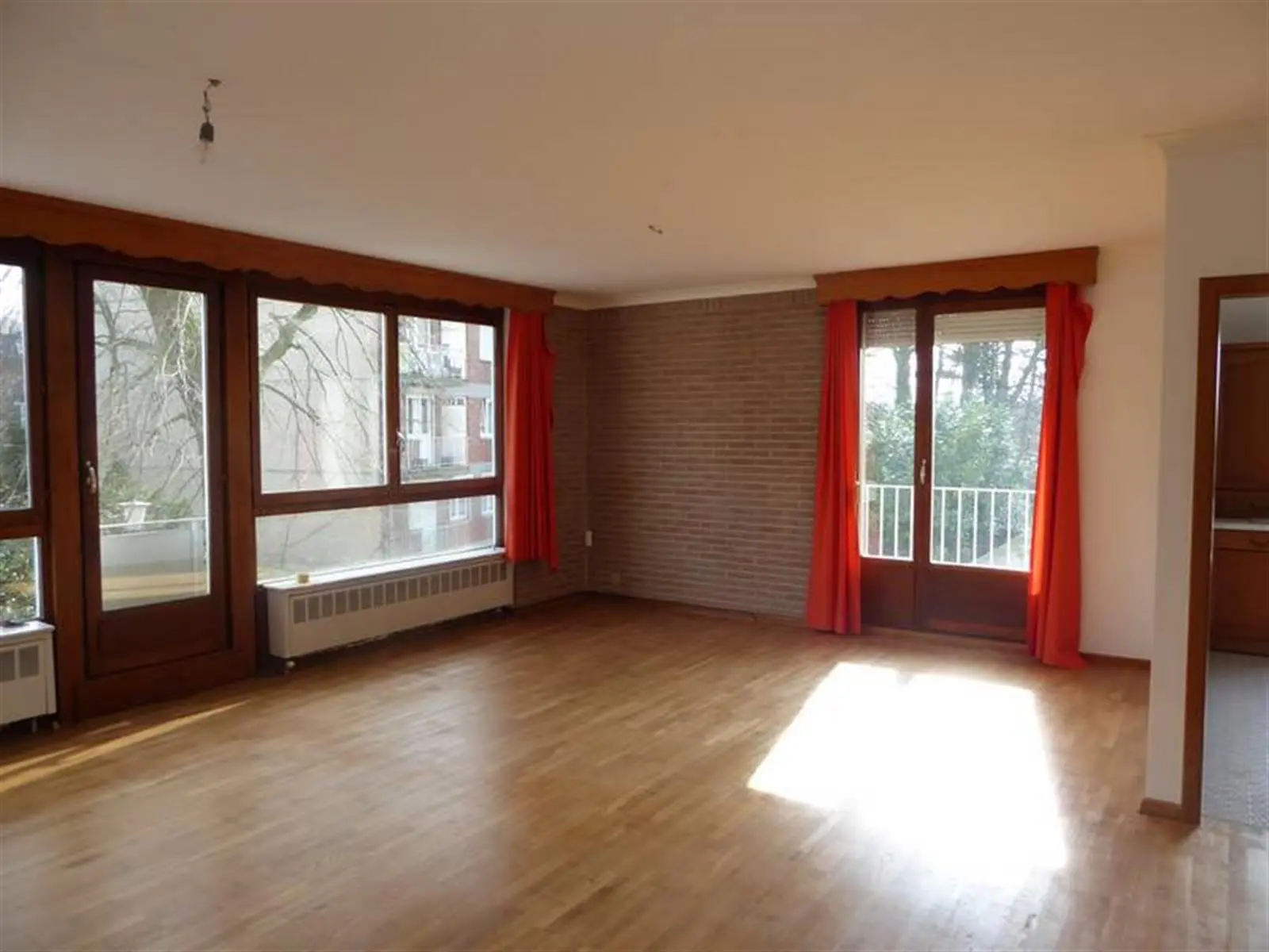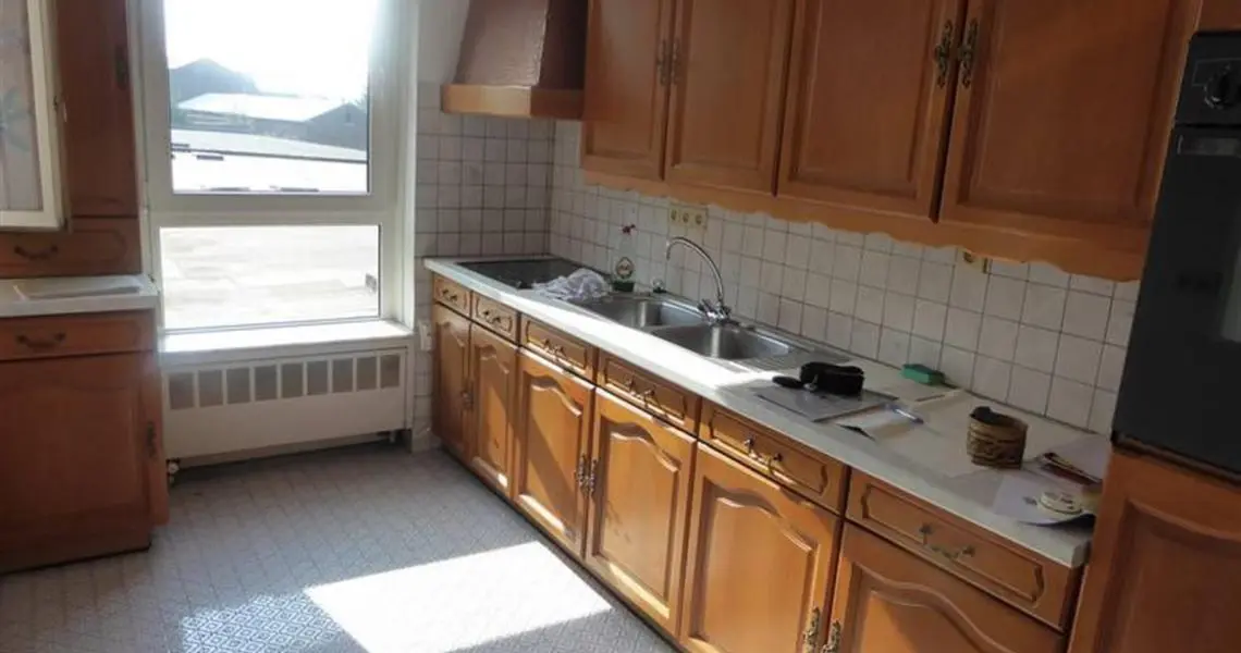 SPACIEUX APPARTEMENT 3 CHAMBRES AVEC POSSIBILITE DE GARAGEAu 1er étage gauche:-Hall d'entrée avec porte sécurisée-Grand et lumineux living avec porte fenêtre sur terrasse-Cuisine meublée et semi équipée: évier, plaque vitrocéramique, hotte, four, accès vers la terrasse-Hall de nuit avec placards-3 chambres dont deux avec accès vers terrasse arrière-Salle de bains équipée-wc séparéSous-sols: une grande caveExtérieur: possibilité d'un garage individuel avec porteEquipement:Eau, électricité, égouts, tel et tvd, ouvre porte, parlophone, ascenseur, chauffage central au mazout avec calorimètres, châssis double vitragePossibilité de garage : 10.000 EurosLibre : à l acte