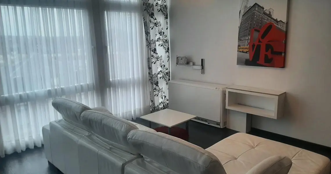 Bel appartement meublé et équipé situé à quelques pas de la gare du Sud et du centre ville de Charleroi Au 5ème étage : Hall d'entrée Living avec cuisine meublée et équipée : évier, plaque vitrocéramique, hotte, frigo, lave-vaisselle Salle de bain équipée : lavabo, douche italienne et wc Une chambre avec dressing séparé Sous-sols : une cave Equipement: Eau, électricité, tel et tvd, chauffage individuel électrique, châssis double vitrage PVC, boiler pour production d'eau chaude, air conditionné Libre Provision de 70 Euros pour les charges communes. Eau et électricité en contrats privatifs