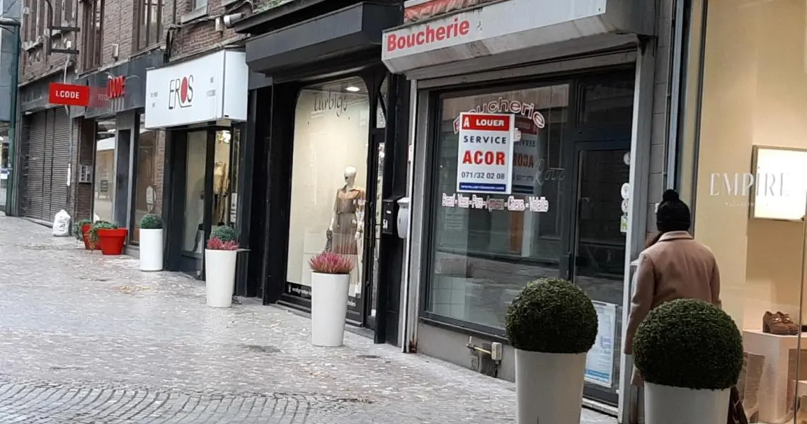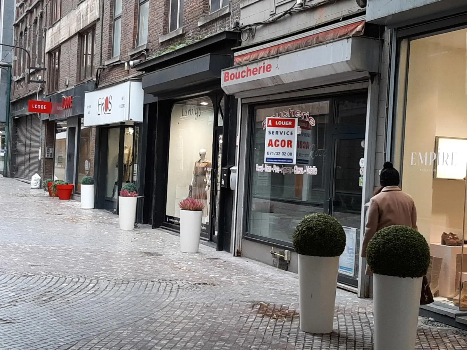 Surface commerciale dans le piétonnier de Charleroi (ancienne boucherie) Pièce d'environ 25 m² avec comptoirs et vitrines Pièce d'environ 16...