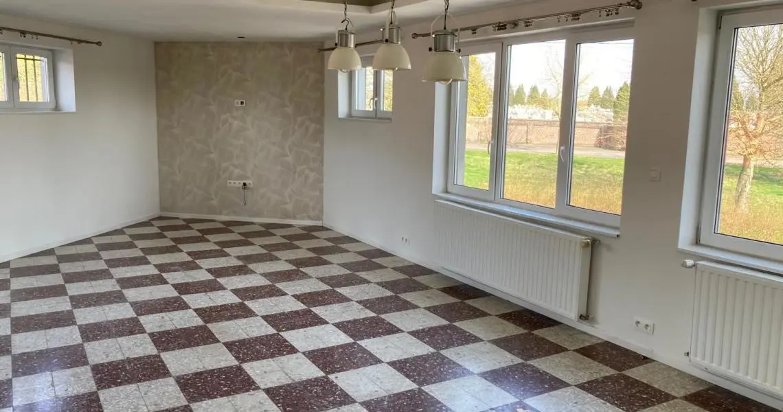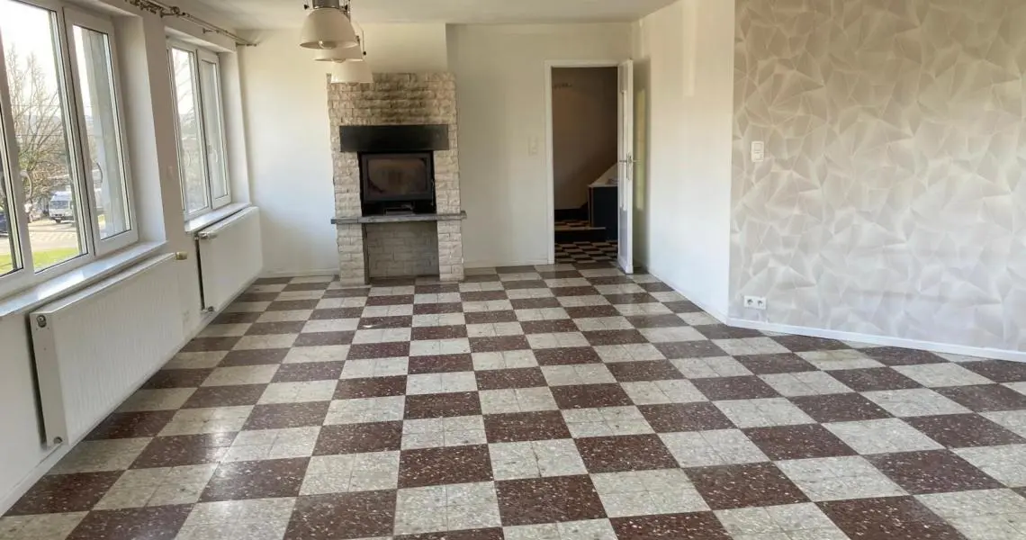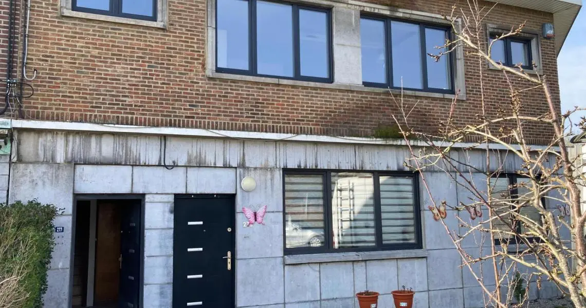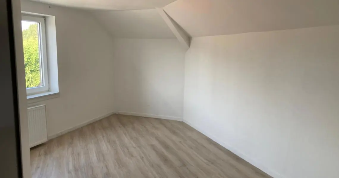 Spacieux appartement duplex/bel étage, comprenant 3 chambres Rez-de-chaussée : Hall d'entrée Débarras -Chaufferie 1er étage: Palier Spacieux et lumineux living Cuisine meublée et semi équipée : évier, plaque vitrocéramique, hotte, frigo congélateur Une grande chambre Salle de douches avec douche italienne et wc 2ème étage: 2 chambres spacieuses Equipement: Eau, électricité, chauffage central au gaz, châssis double vitrage Possibilité de location d'un grand garage (3 voitures) : 150 Euros par mois Libre Garantie locative de DEUX MOIS Etat des lieux par Expert, à frais partagés, soit +/- 185 Euros pour chacune des parties