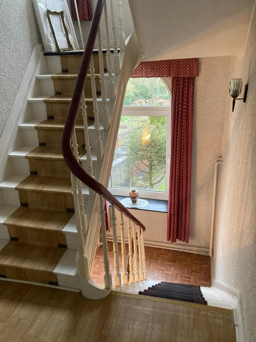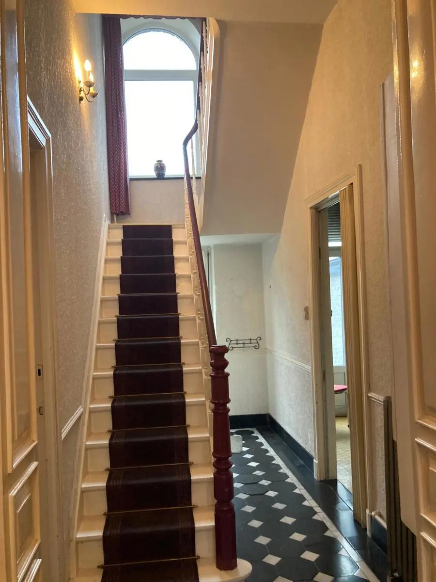 Vous serez séduits par cette lumineuse et spacieuse maison de ville avec un grand jardin enmuré, garage et passage latéral. Elle est situé dans un joli quartier résidentiel et proche de toutes commodités. Rez-de-chaussée: Beau hall d'entré Salon avec cheminée décorative Salle à manger Cuisine + office ; accès au garage Grande terrasse donnant sur le jardin Etage : Palier desservant les 4 chambres Salle de bains Combles: Vaste grenier pouvant être aménagé Sous-sols: Caves sous jardin dont cellier, chaufferie et petit atelier Equipement: Eau, égouts, électricité, chauffage au gaz, production d'eau chaude par boiler électrique pour la cuisine et la salle de bains, châssis double vitrage bois et pvc Superficie habitable : 197 m² Revenu cadastral : 1.073 Euros Libre à l'acte
