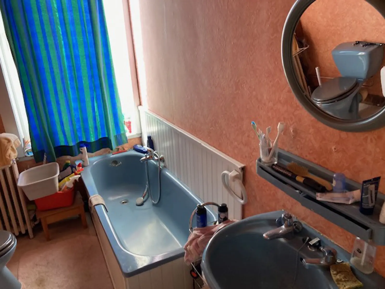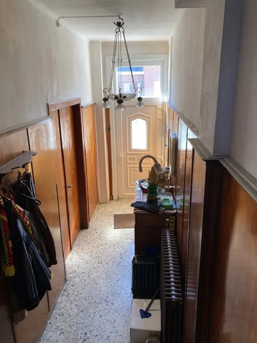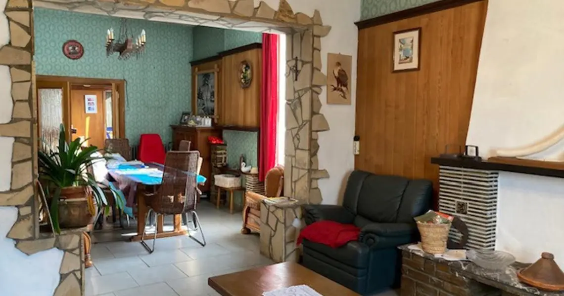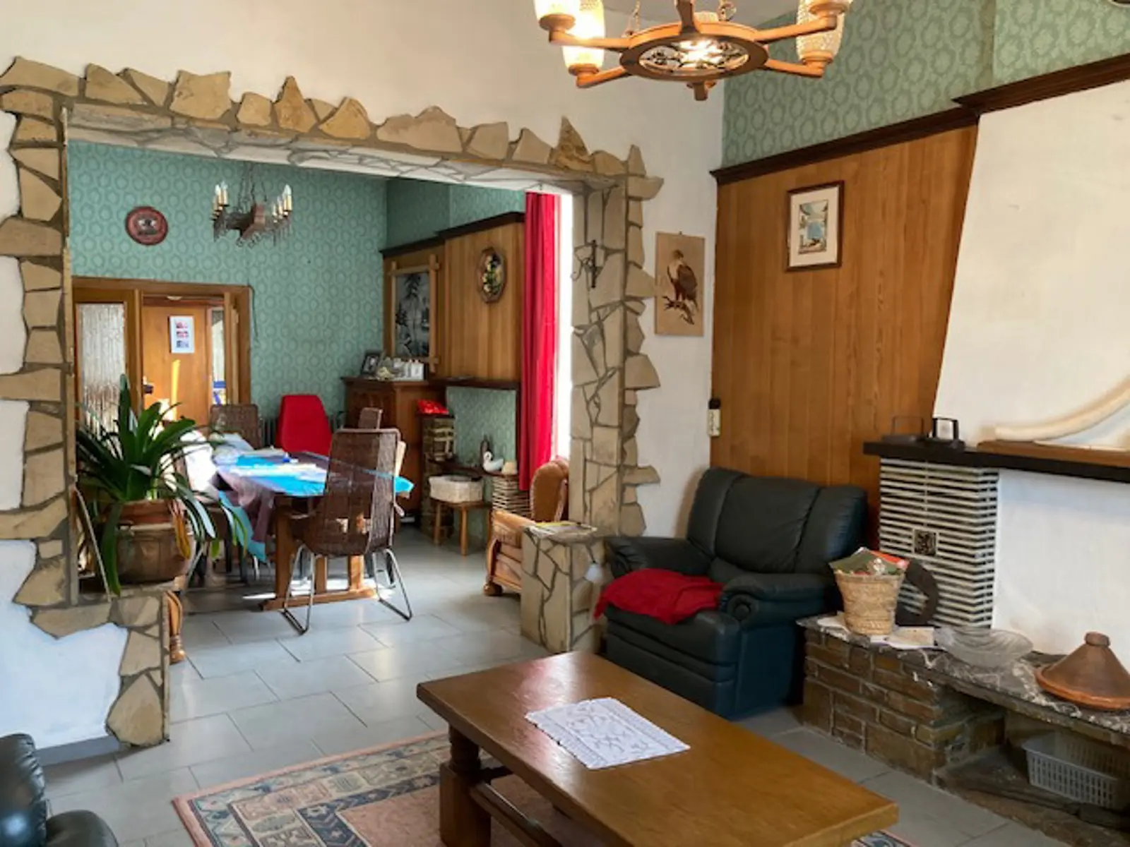 JOLIE ET SPACIEUSE MAISON TROIS FACADES avec grand jardin (dont terrain à bâtir) et annexes (grand atelier). Actuellement divisée en deux logements n°50 et 50a (rez et étages) avec 2 entrées, cette maison peut aisément revenir comme maison unifamiliale comme à l'origine. Elle est dotée de deux parking extérieur et le terrain est entièrement clôturé. Composition: REZ: Hall d''entrée, Grand salon/living, salle de séjour, cuisine, salle de bains et une chambre. Etage 1: living, salle de bains, une cuisine. Etage 2: 2 chambres + grenier. Sous-sols: caves Chauffage central individuel gaz Annexes: grand atelier de +/- 200 m2. Etage actuellement loué à bail verbal (445 € -peut être libéré à convenir). Terrain total;: 12 ares 78 cares. RC de base: PRIX: 220.000 EUR ou offre supérieure