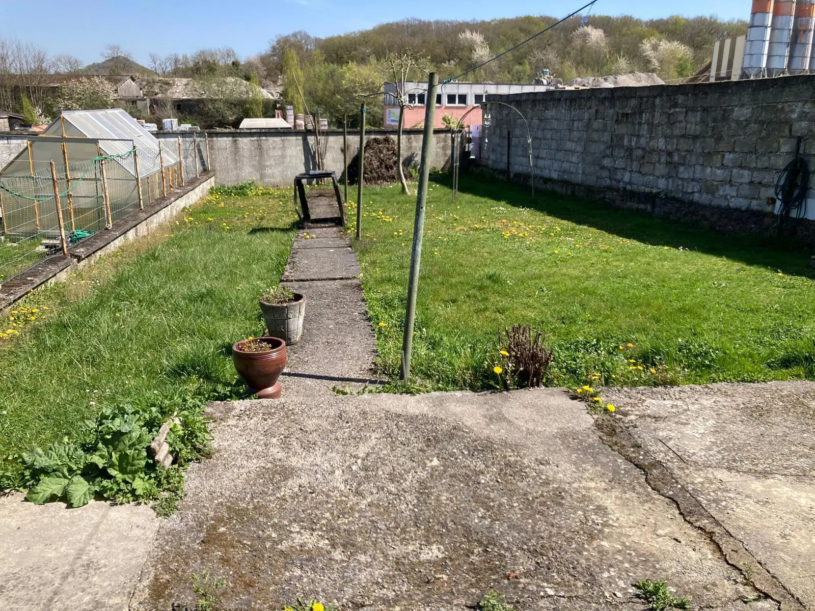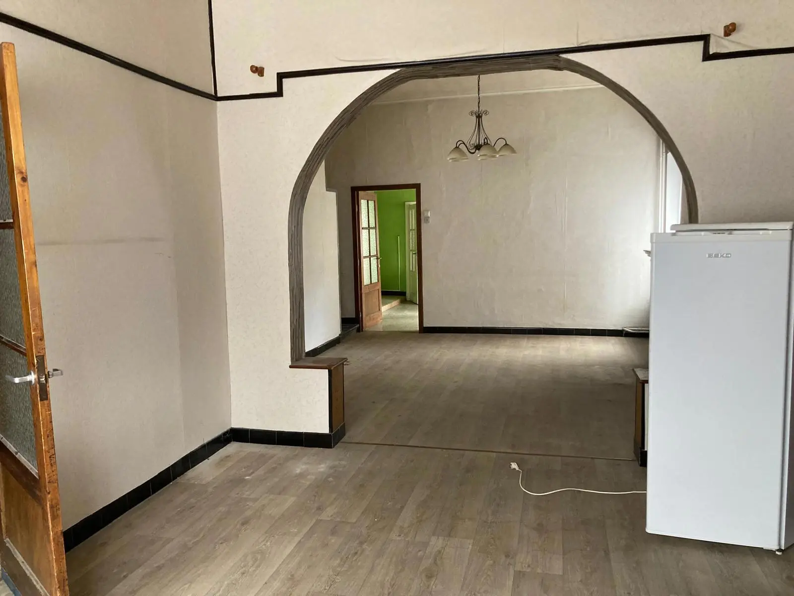 Maison 3 façades comprenant 3 chambres, 2 garages, jardin et avant cour (parking) Rez-de-chaussée: Hall d'entrée Spacieux living avec arcade et...