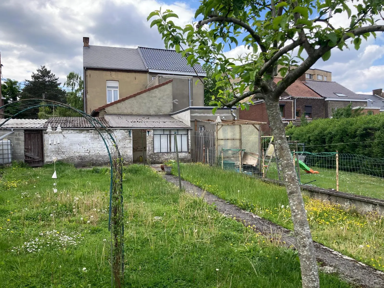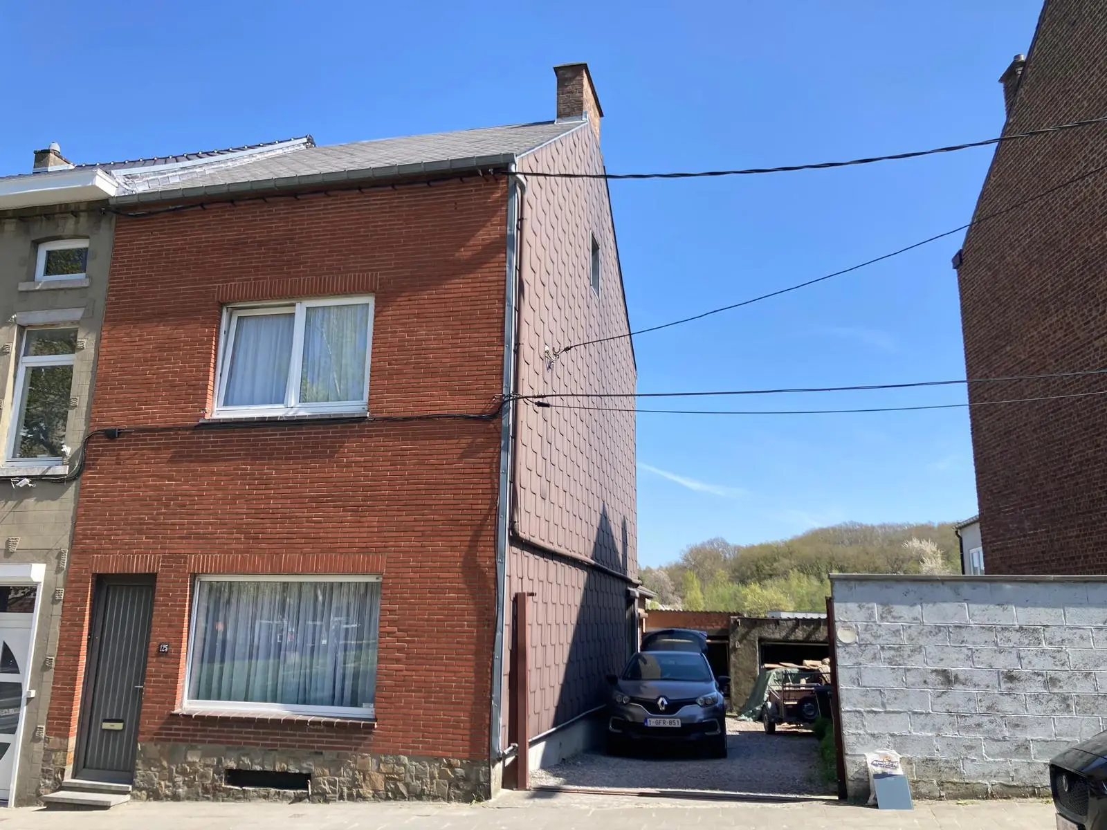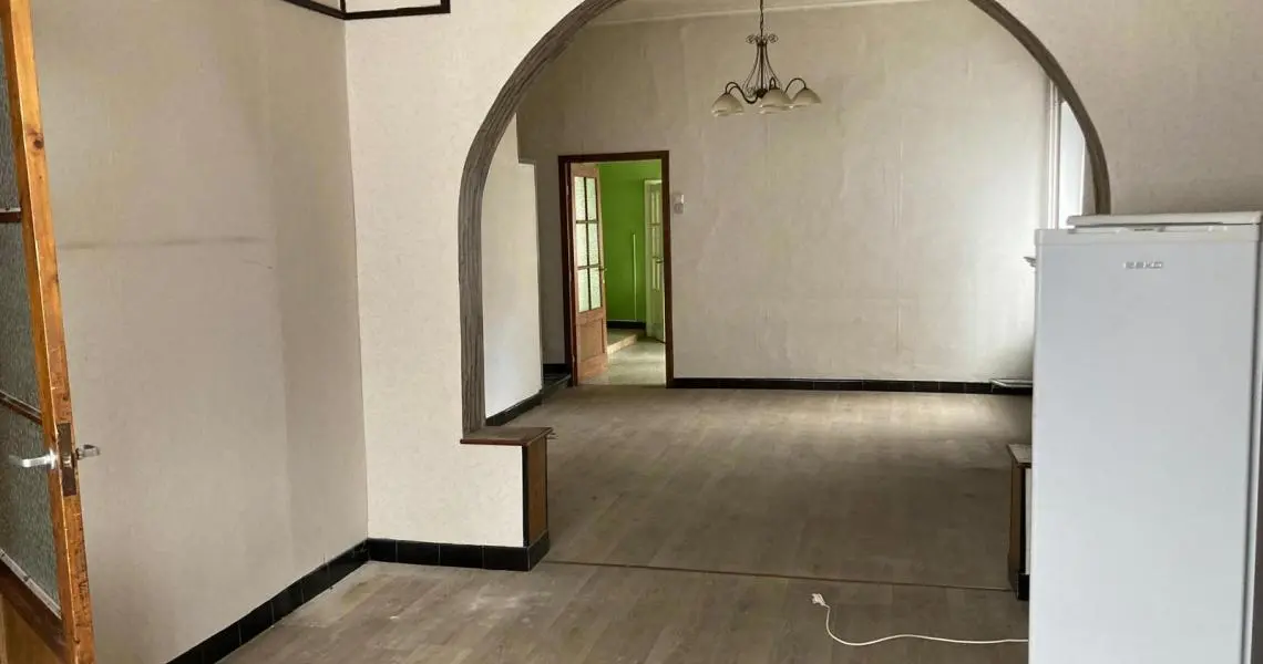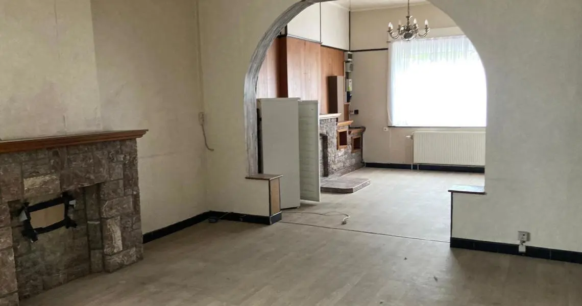 Maison 3 façades comprenant 3 chambres, 2 garages, jardin et avant cour (parking) Rez-de-chaussée: Hall d'entrée Spacieux living avec arcade et cheminée décorative Salle de séjour avec cheminée décorative Cuisine meublée: évier, emplacement pour électroménagers; sortie vers le jardin Annexe sur jardin Salle de bains équipée : lavabo, baignoire et wc Etage: 2 spacieuses chambres (convertibles en 3 chambres) Grenier : aménageable en 2 grandes chambres Sous-sols: Caves Equipement : Eau, égouts, tel, chauffage central au gaz, boiler électrique pour la production d'eau chaude, toiture rénovée, châssis double vitrage Revenu cadastral : 728 Euros Superficie habitable ; 146 m² Superficie totale : 4 ares 30 ca Libre : à l'acte