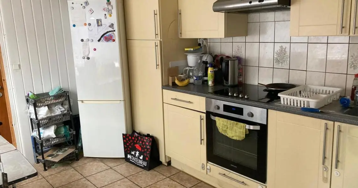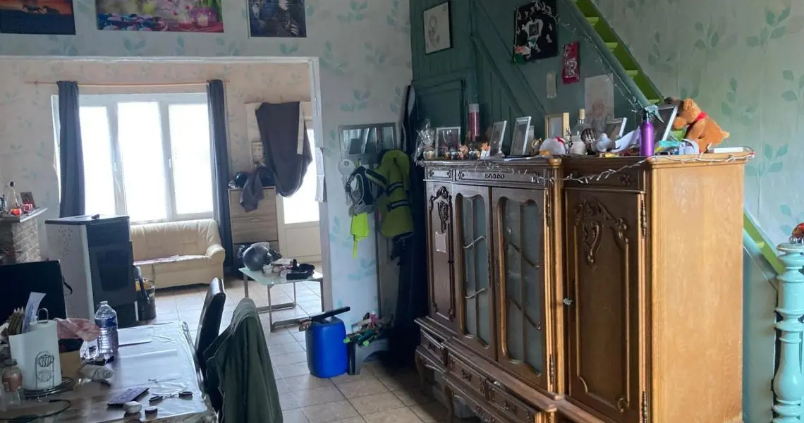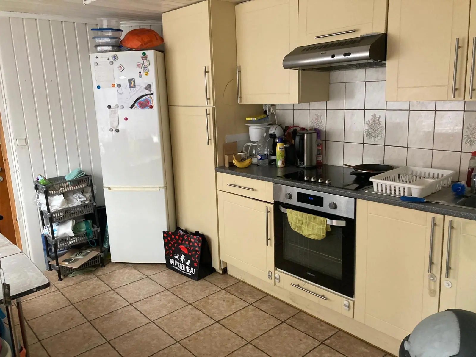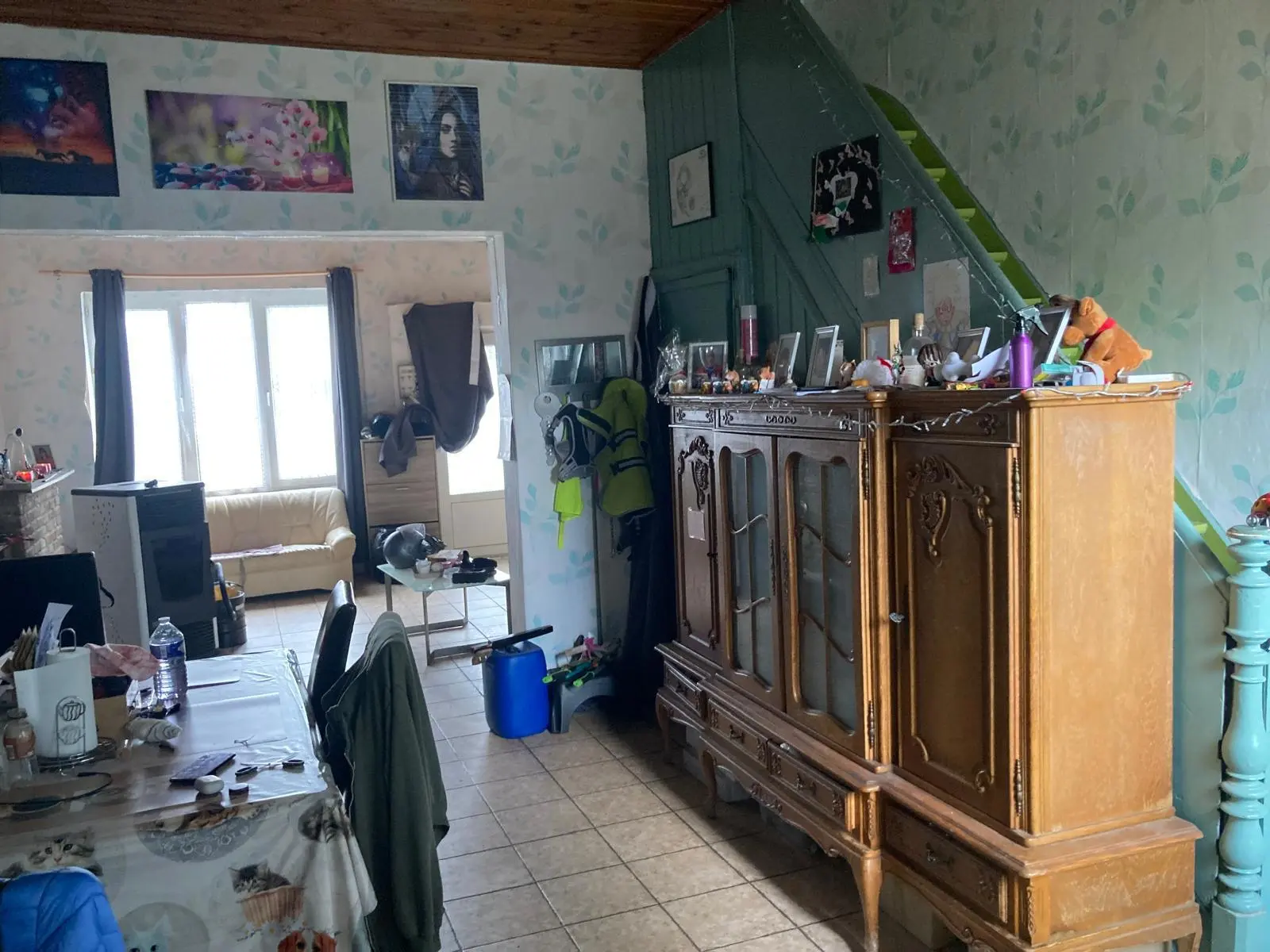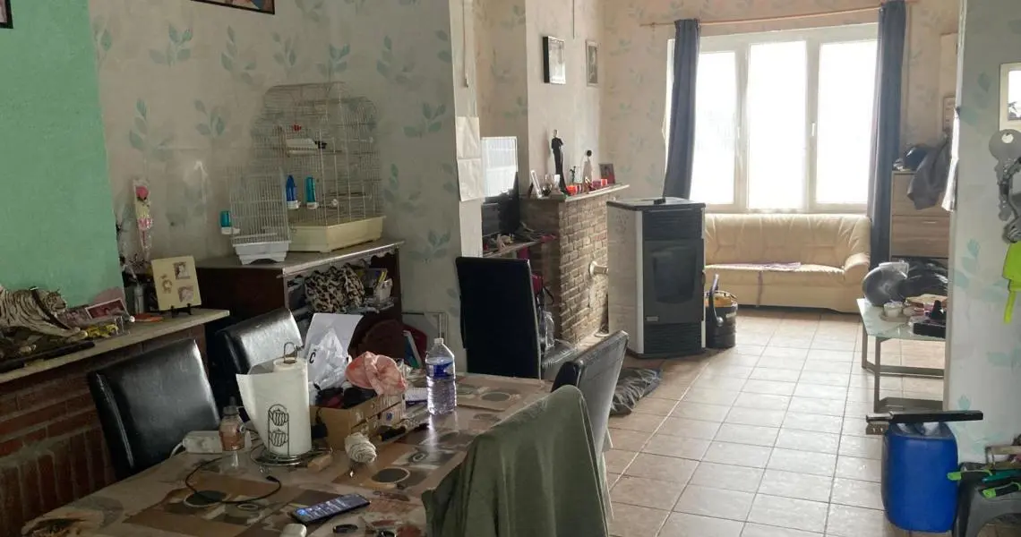 MAISON DEUX CHAMBRES AVEC COUR Rez-de-chaussée : Living avec poêle à pellet Cuisine meublée et équipée; sortie sur cour avec passage latéral Salle de bains avec lavabo, baignoire et wc; coin buanderie Etage : Deux chambres Equipement: Eau, égouts, électricité, chauffage poêle au pellet Libre : à convenir Superficie habitable : 125 m² (selon PEB) Revenu cadastral : < 745 Euros