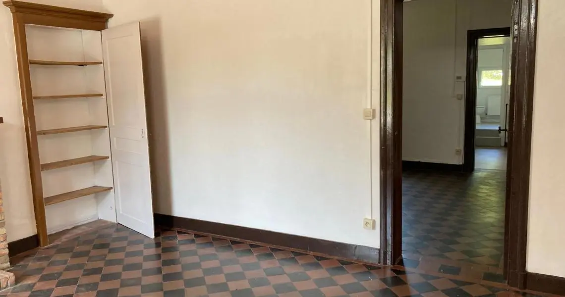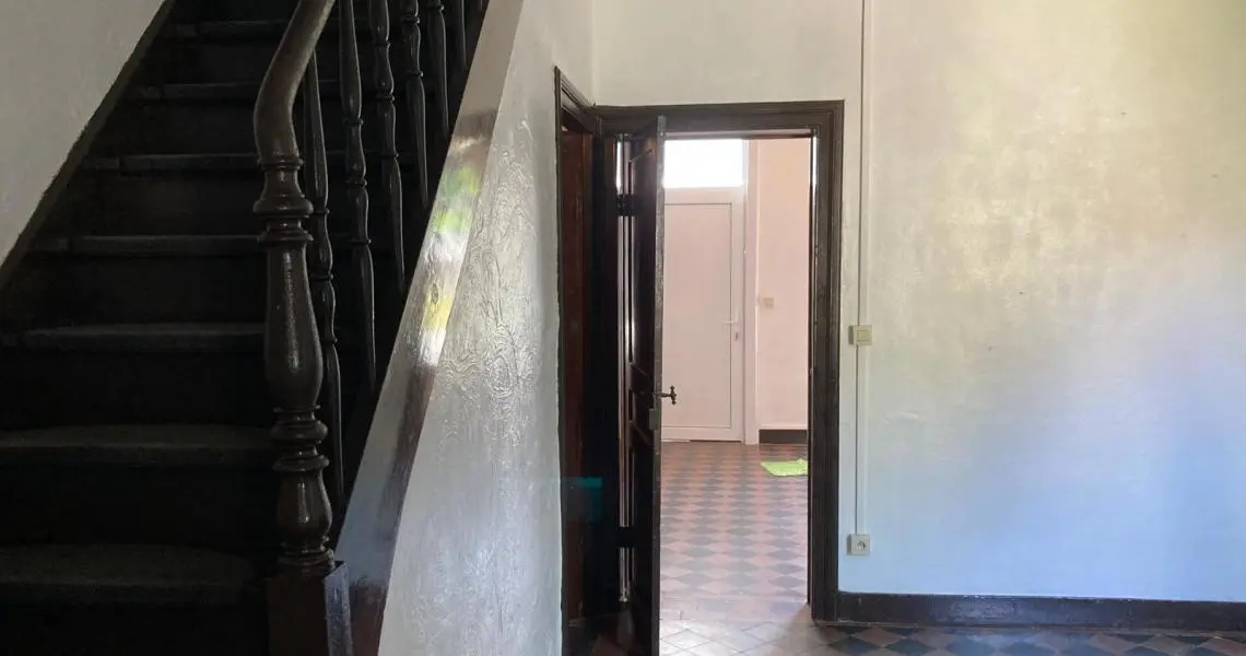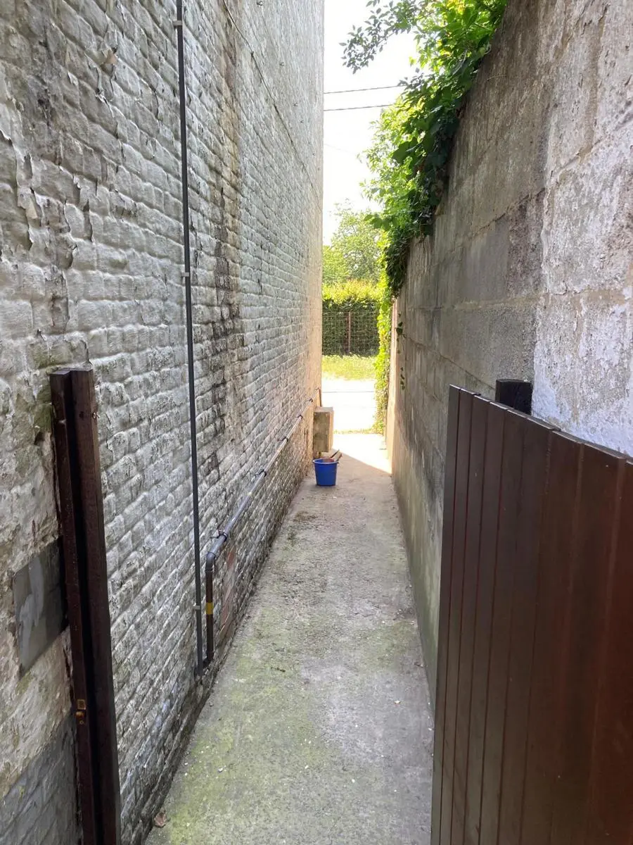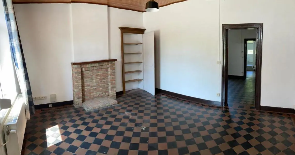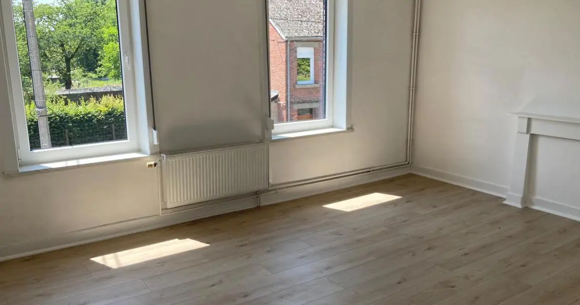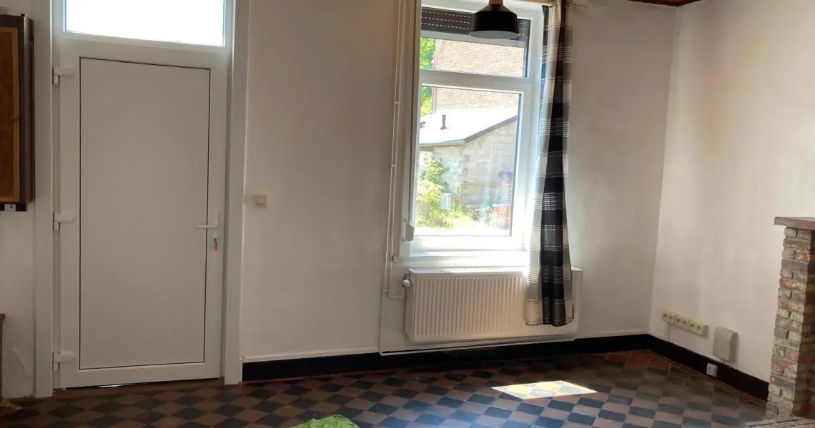 Jolie maison de 2 chambres et jardin au centre de Nalinnes Rez-de-chaussée : Salon Living Cuisine meublée et semi équipée : évier,...