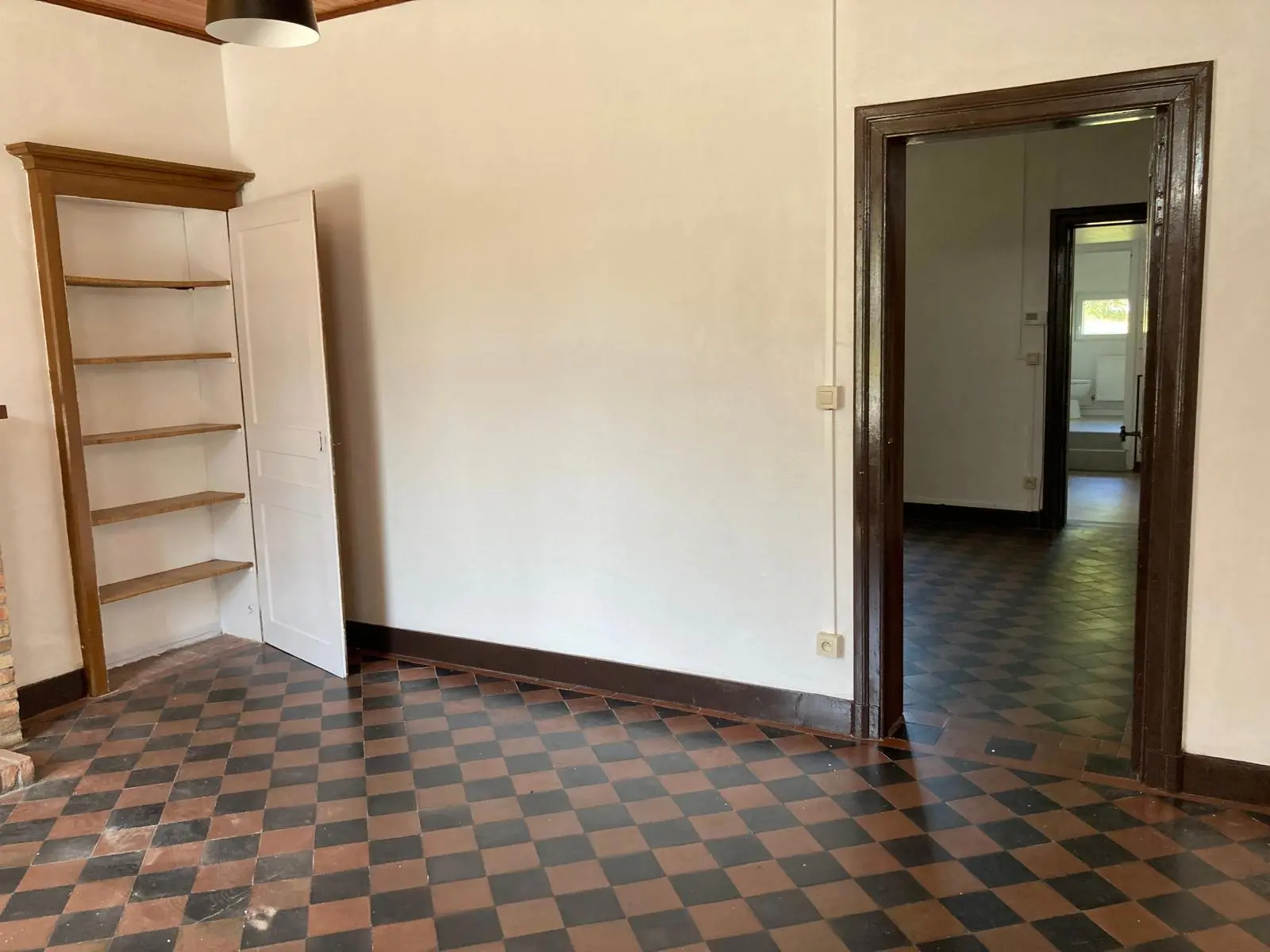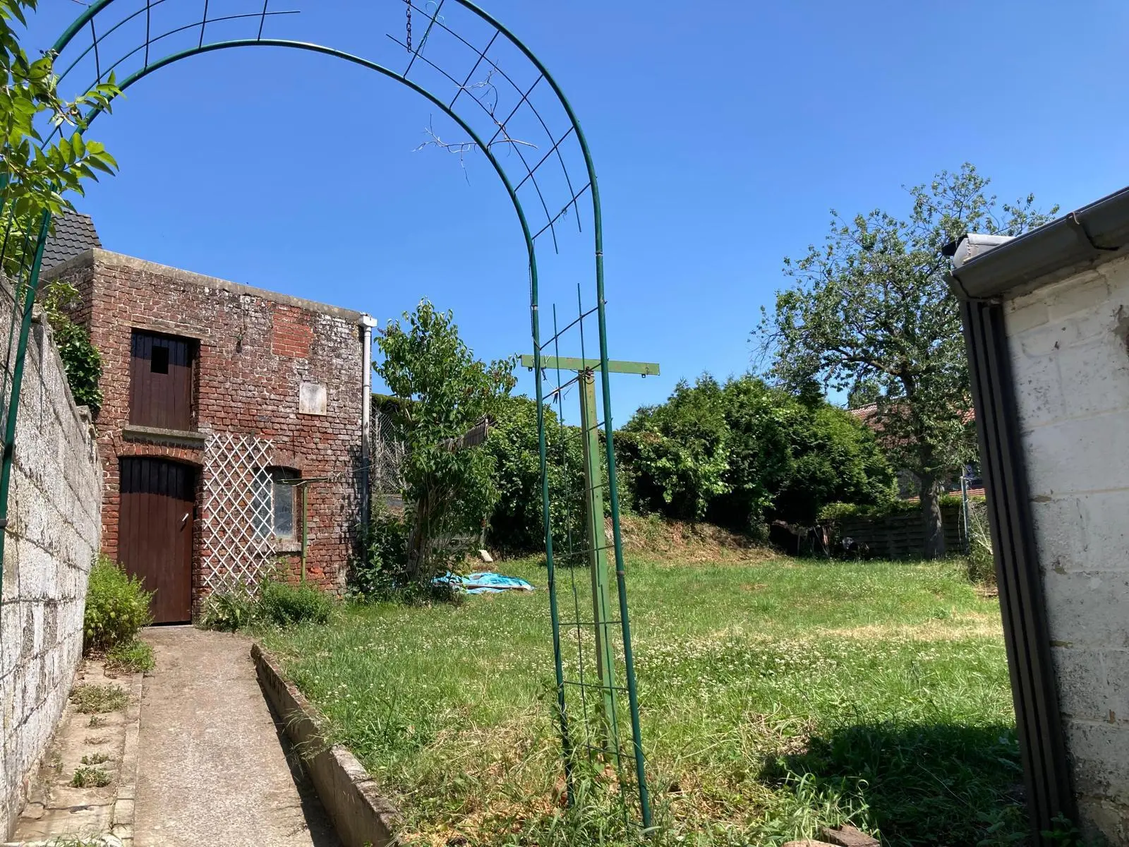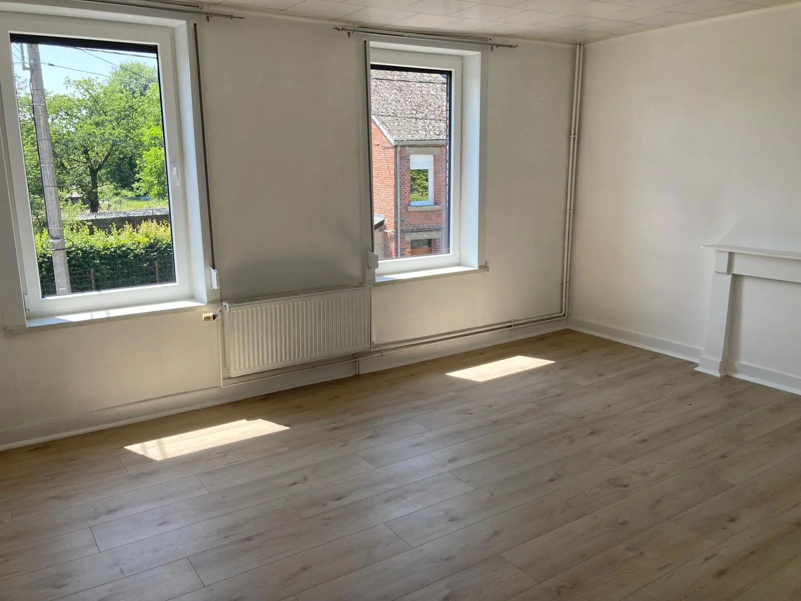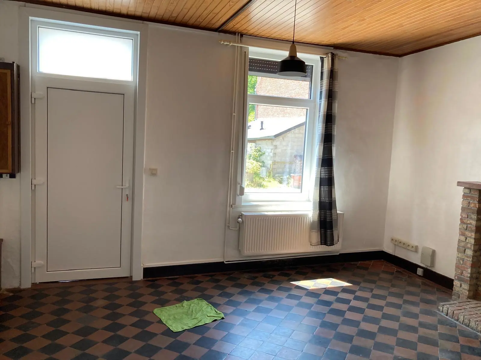 Jolie maison de 2 chambres et jardin au centre de Nalinnes Rez-de-chaussée : Salon Living Cuisine meublée et semi équipée : évier,...