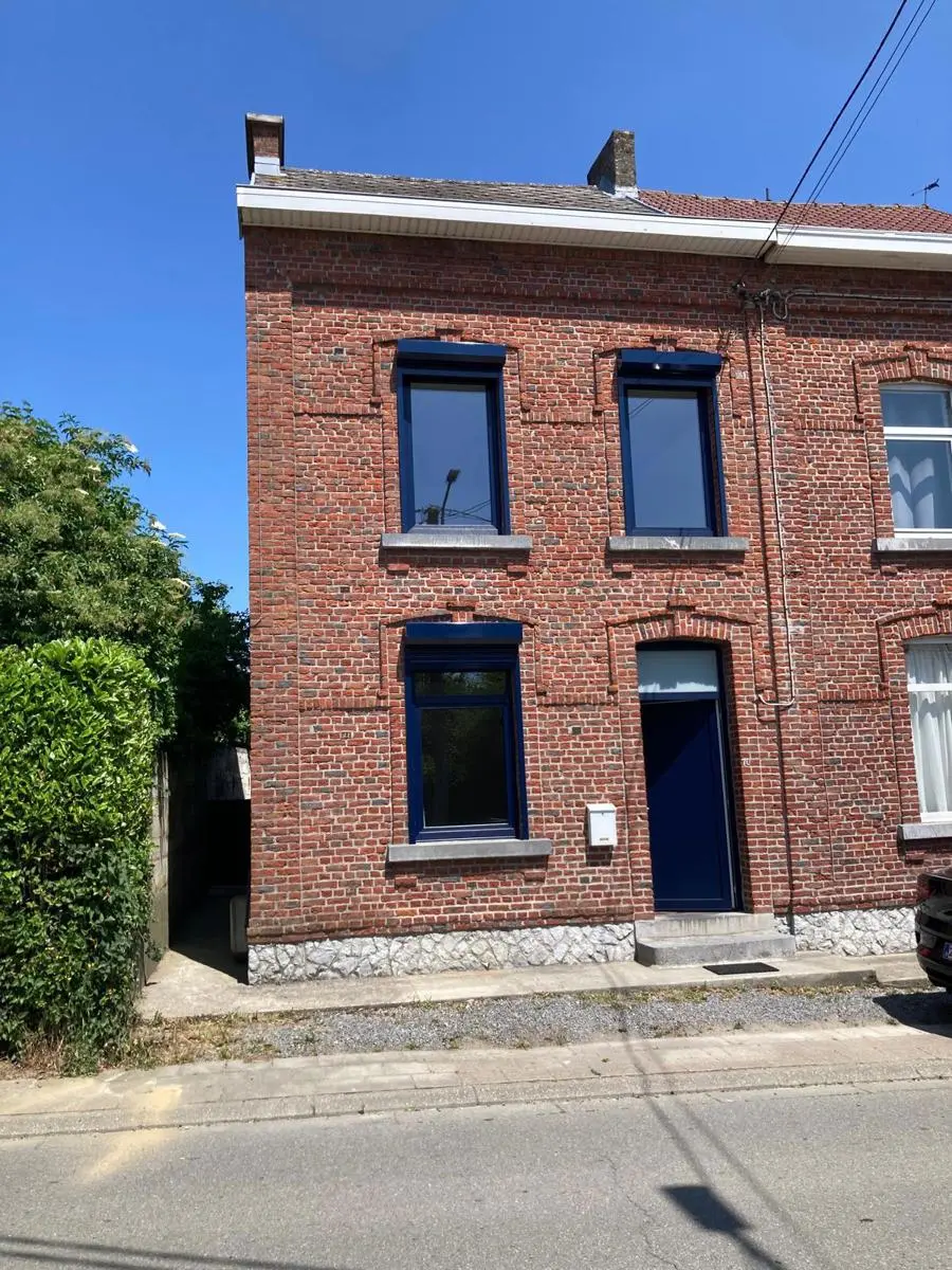 Jolie maison de 2 chambres et jardin au centre de Nalinnes Rez-de-chaussée : Salon Living Cuisine meublée et semi équipée : évier, cuisinière électrique avec four, hotte, frigo Salle de douches avec lavabo, douche italienne et wc Etage : Palier Deux grandes chambres Combles: grenier et pièce de rangement Sous-sols : 2 caves dont la chaufferie Extérieur: Jardin, passage latéral, petite annexe Equipement: Eau, électricité, gaz, égouts, châssis double vitrages neufs, chauffage central au gaz avec production d'eau chaude