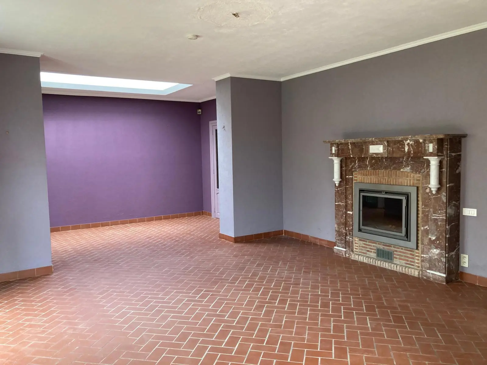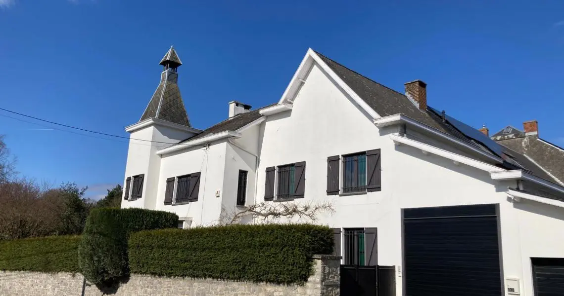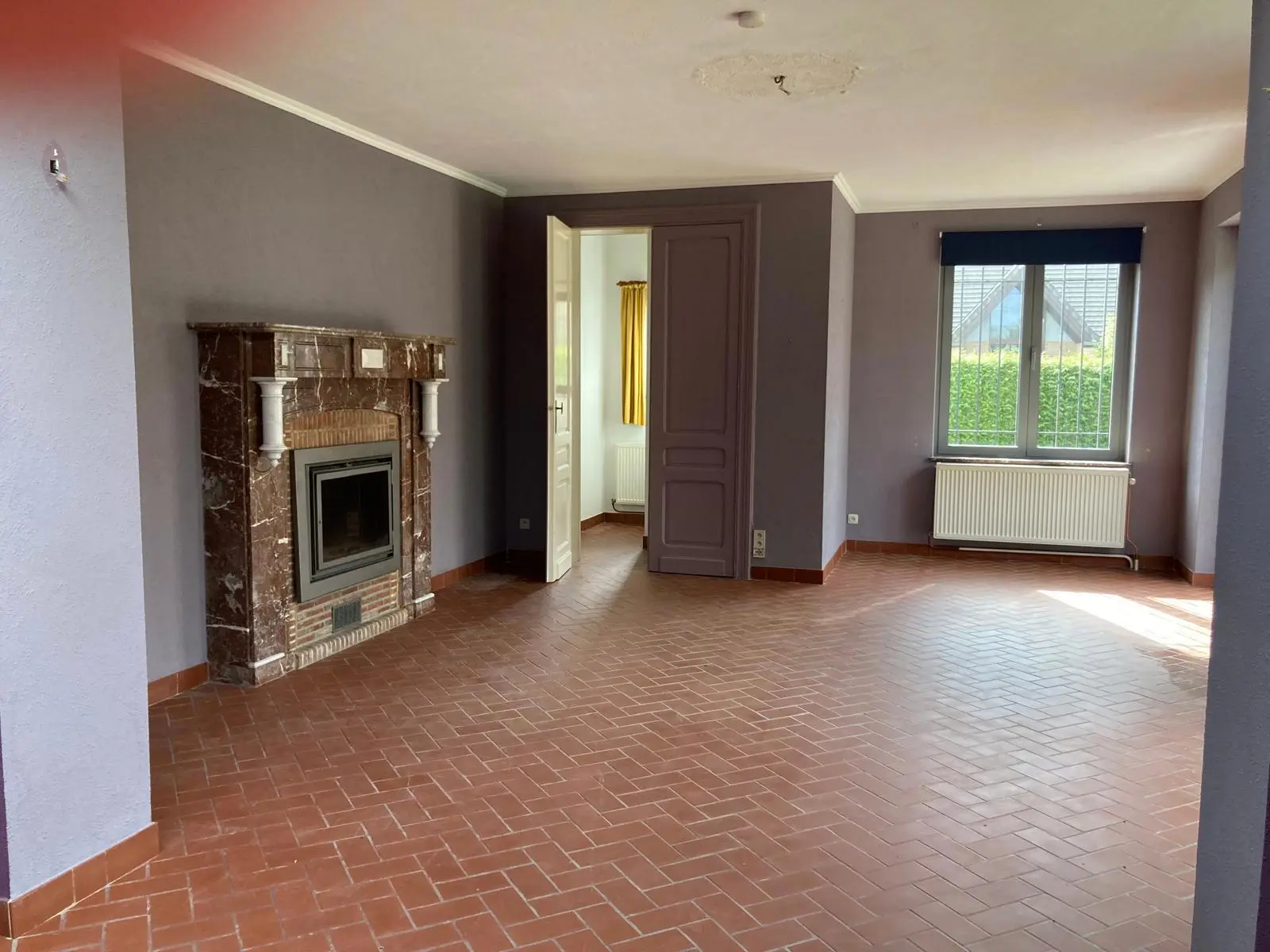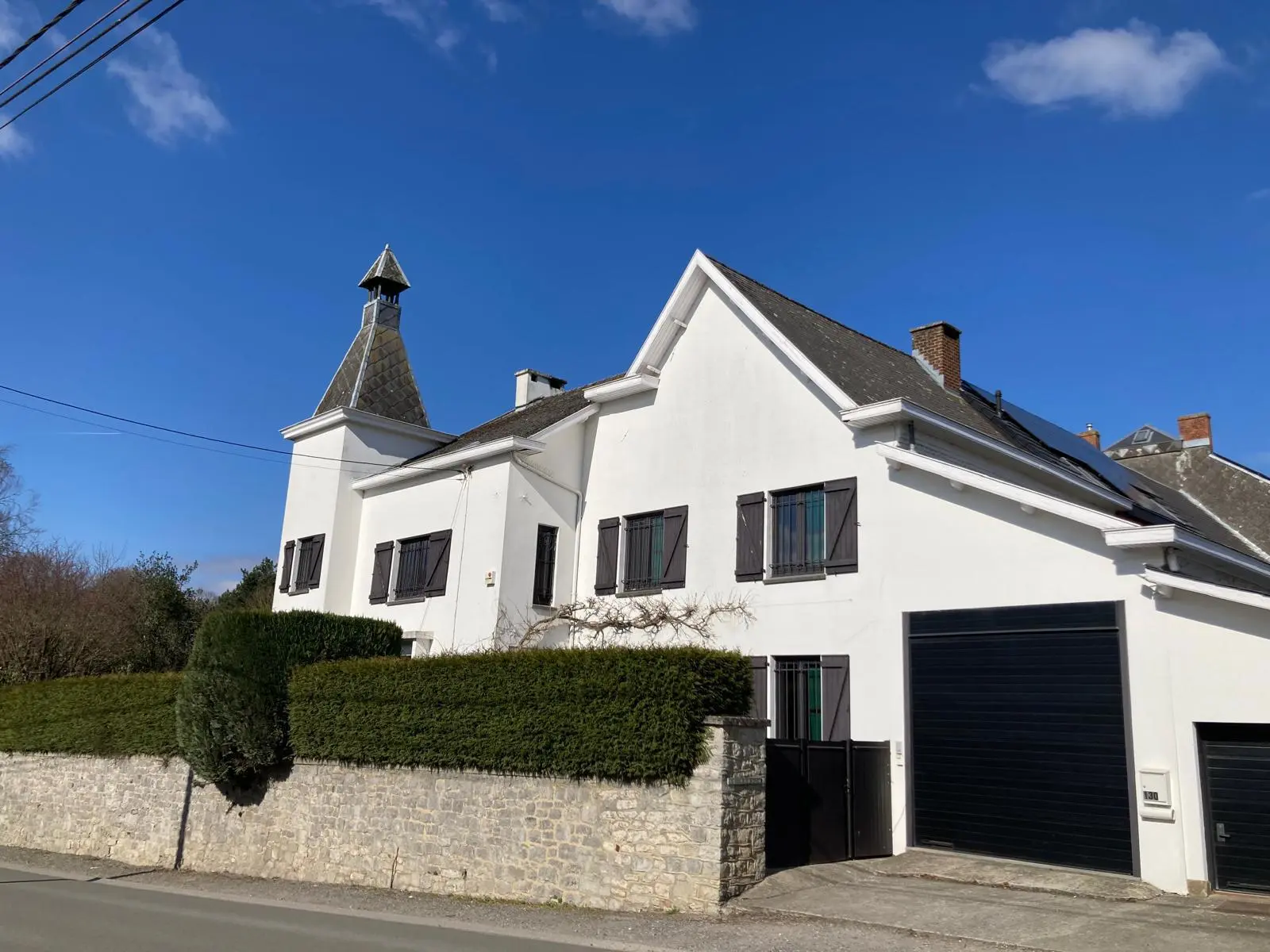 Elégante et spacieuse et lumineuse villa d'habitation Composition : Rez-de-chaussée: Hall d'entrée avec sol en pierres bleues Bureau avec cheminée Vestiaire et wc Spacieuse cuisine (à reconditionner) Deux spacieux living dont un avec poutrelles apparentes et feu ouvert (55 m²) et l'autre (56 m²) avec grandes baies vitrées sur grande terrasse d'environ 40 m² avec tente solaire électrique Jardin Accès aux deux garages par l'intérieur Etage : Palier Deux salles de bains 4 chambres (15 m², 18 m², 12 m² et 32 m²) Combles : Vaste grenier aménageable accessible via escalier directement depuis le palier Sous-sols : 2 caves voûtées Joli jardin arboré avec passage latéral Equipement : Deux grands garages avec portes sectionnelles électriques, parking extérieur, chauffage central au mazout, système d'alarme Terrain de 9 ares 36 ca RC de base : 1.487 Euros