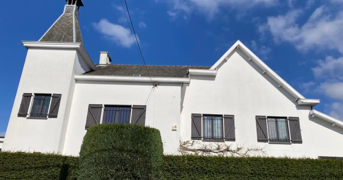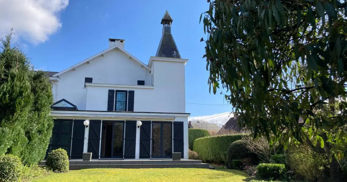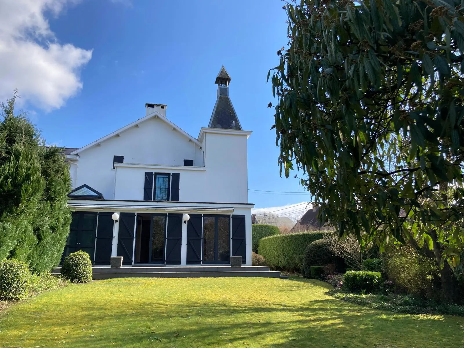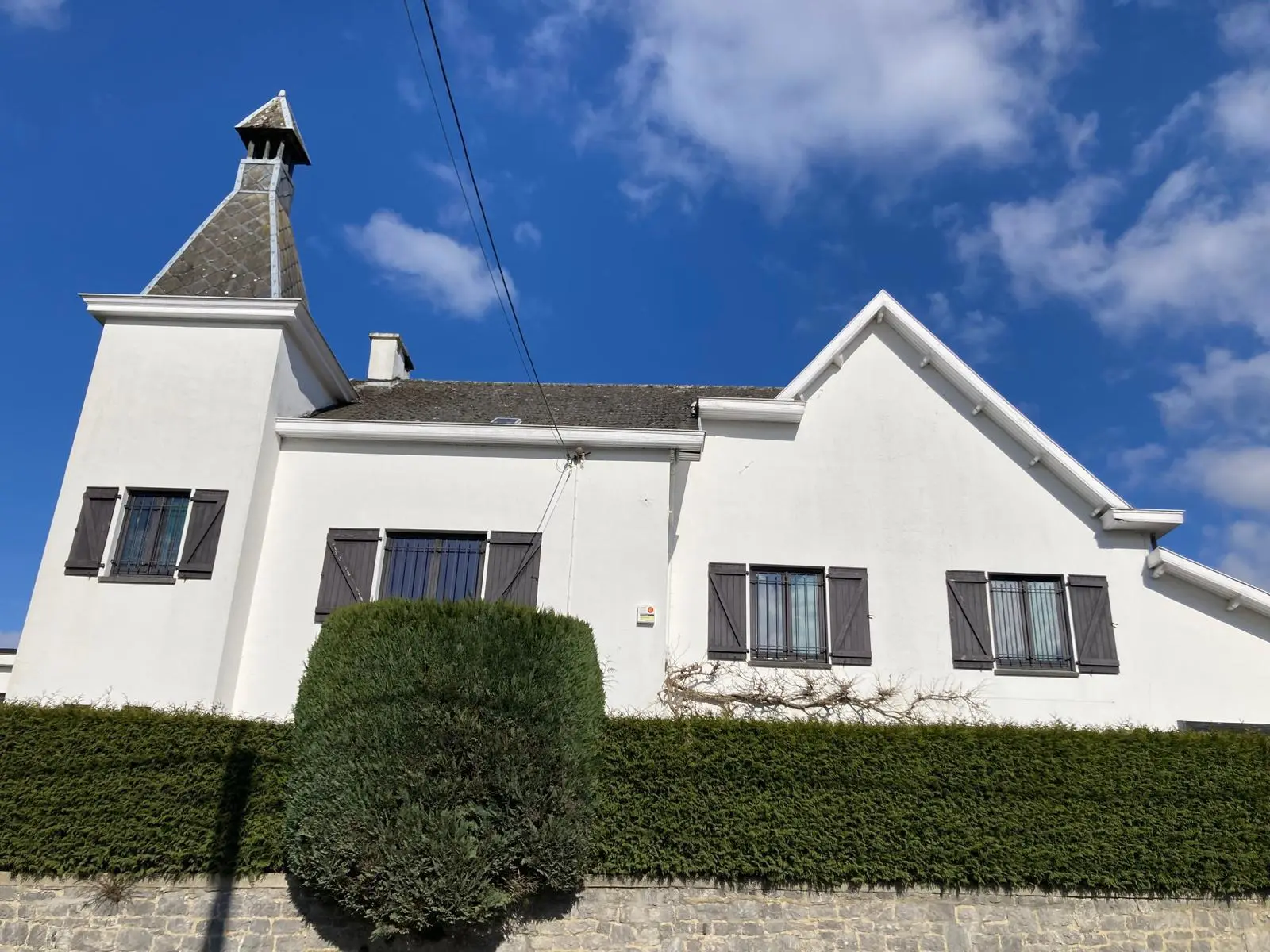 Elégante et spacieuse et lumineuse villa d'habitation Composition : Rez-de-chaussée: Hall d'entrée avec sol en pierres bleues Bureau avec cheminée Vestiaire et wc Spacieuse cuisine (à reconditionner) Deux spacieux living dont un avec poutrelles apparentes et feu ouvert (55 m²) et l'autre (56 m²) avec grandes baies vitrées sur grande terrasse d'environ 40 m² avec tente solaire électrique Jardin Accès aux deux garages par l'intérieur Etage : Palier Deux salles de bains 4 chambres (15 m², 18 m², 12 m² et 32 m²) Combles : Vaste grenier aménageable accessible via escalier directement depuis le palier Sous-sols : 2 caves voûtées Joli jardin arboré avec passage latéral Equipement : Deux grands garages avec portes sectionnelles électriques, parking extérieur, chauffage central au mazout, système d'alarme Terrain de 9 ares 36 ca RC de base : 1.487 Euros