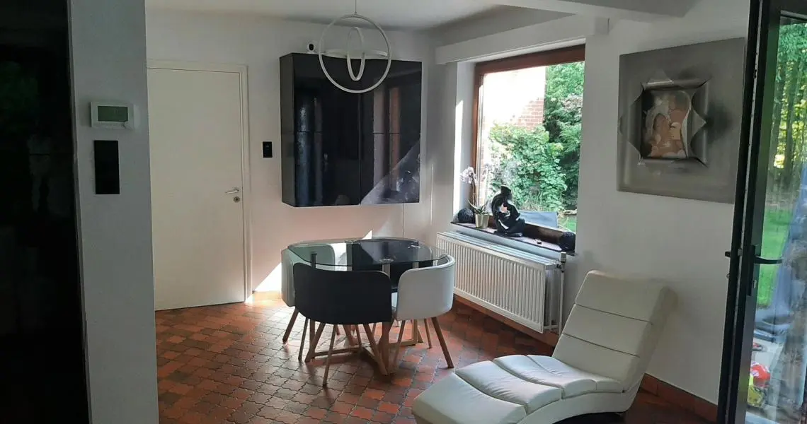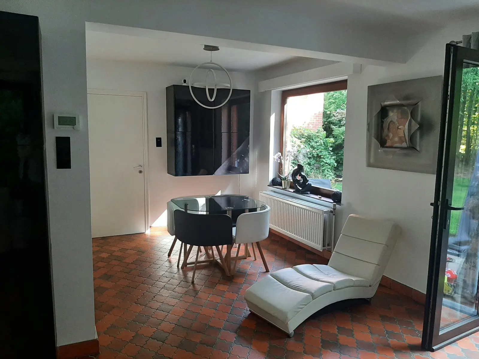 Dans quartier résidentiel, jolie villa plain pied, comprenant 3 chambres, un jardin et un garage Rez-de-chaussée: Hall d'entrée Vestiaire avec wc séparé Cuisine meublée et équipée: évier, plaque à induction, hotte, four, lave-vaisselle, frigo congélateur Spacieux living avec portes-fenêtres donnant sur la terrasse et le jardin Entresols : 3 chambres parquetées, dont une avec accès à la salle de bains Salle de bains équipée : meuble double lavabos, baignoire avec douche, wc Sous-sols: Garage 2 caves Dressing Equipement: Eau, électricité (compteur bi horaire), chauffe-eau électrique pour la cuisine, chauffage central au gaz avec production d'eau chaude( vannes thermostatiques), châssis double vitrage, fosse septique Libre : le 01 novembre 2025 Bail : 3 ans