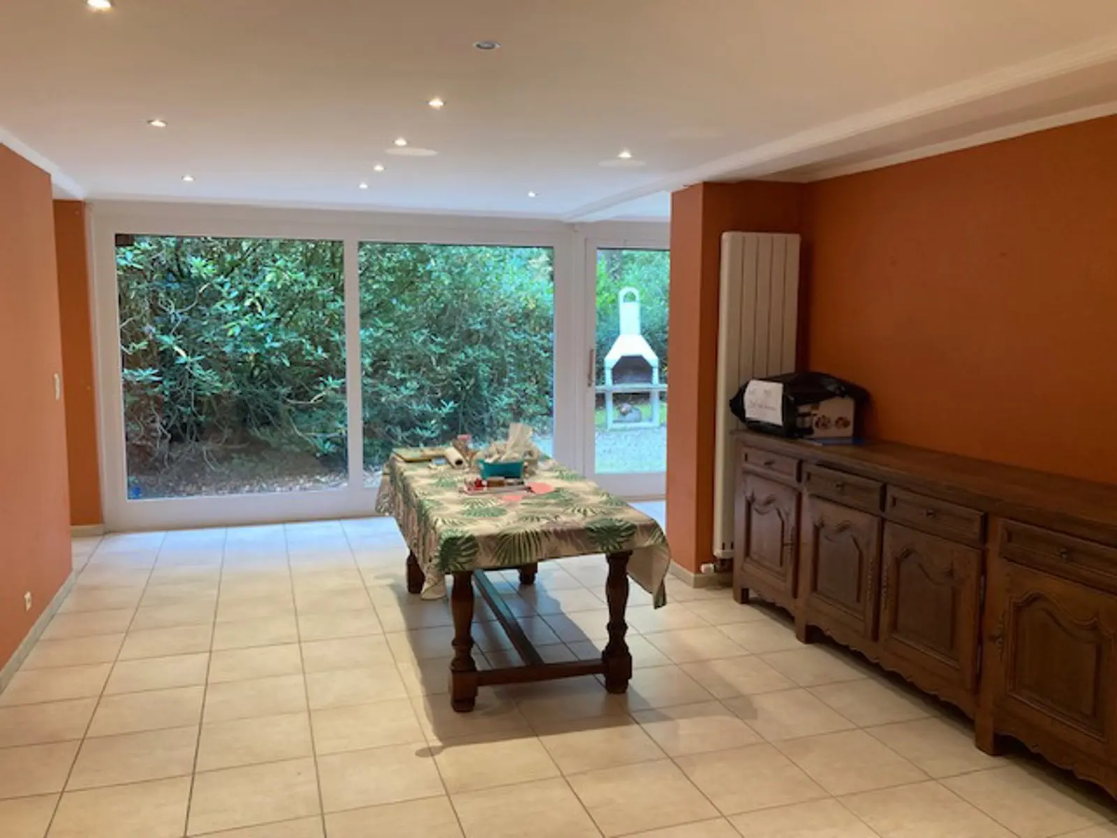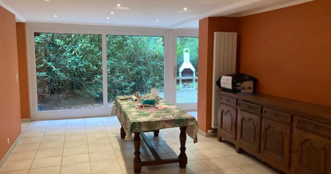 Sur un très grand terrain arboré et précédée par une drève privée, jolie villa de 3 chambres à réaménager partiellement comprenant deux hall d'entrée, 2 wc, living avec porte fenêtre sur terrasse et jardin, cuisine meublée et équipée, ancien espace piscine intérieure à reconditionner. A l'étage 3 chambres, 2 salles de bain, débarras placards. A l'extérieur deux garages arrières. Grand terrain arboré. Sous-sols Chauffage central mazout et vide ventilé. RC de base 775 euros. Terrain total: 21 ares Prix souhaité pour l'acquisition de la société propriétaire: 235.000 euros ou offre supérieure Attention ! l'acquisition de ce bien se fera exclusivement par le rachat de la société immobilière qui en est propriétaire (toutes informations sont disponibles). Le rachat d'une société n'est généralement pas financé par un crédit hypothécaire classique. Le paiement des droits d'enregistrement pourrait être aussi exigé par l'administration.